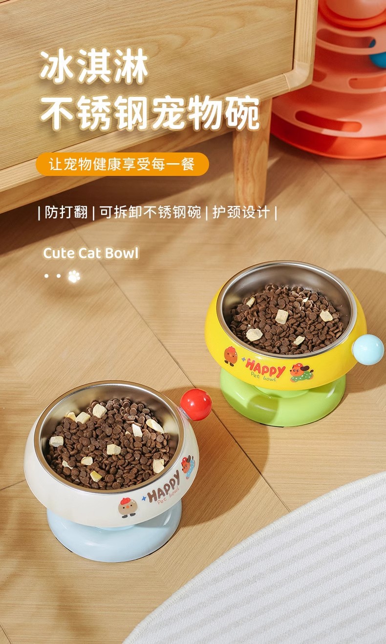 【柠檬黄不锈钢碗】冰淇淋-加高绿底座