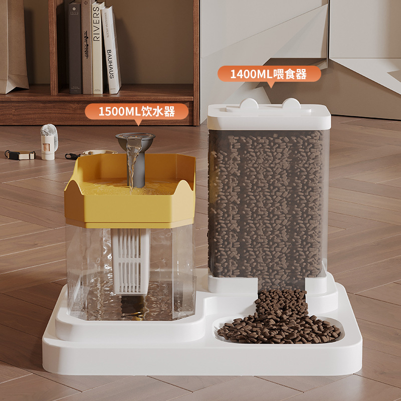 - 奶黄色陶瓷碗【不黑下巴+喂食+自动蓄水】