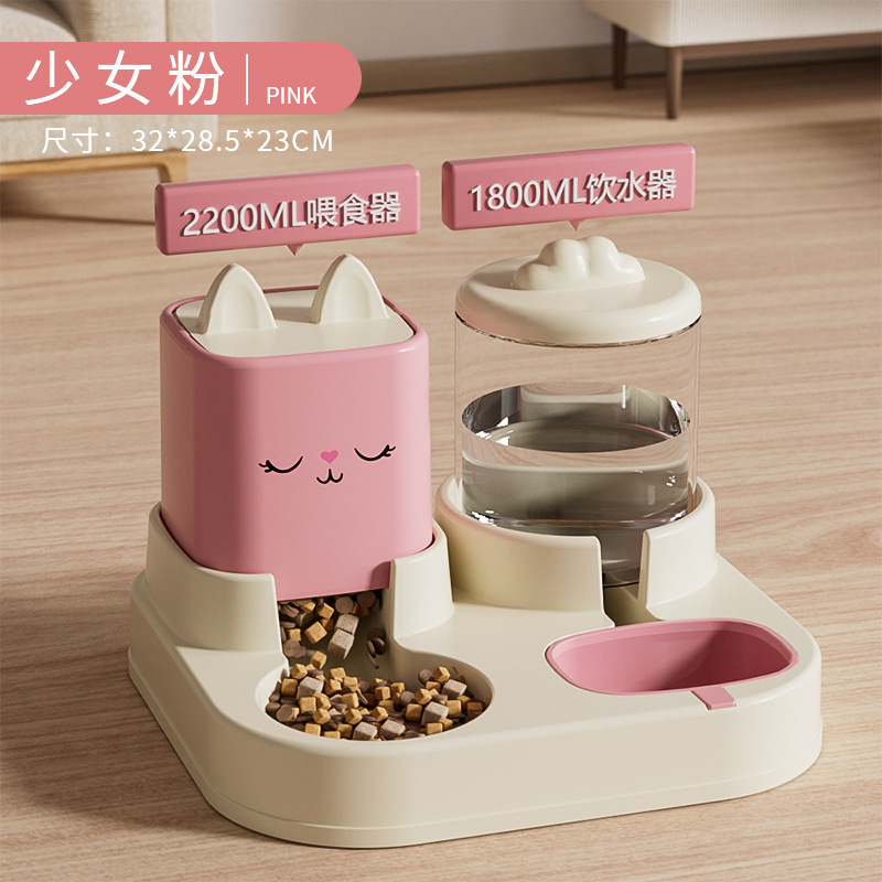 猫碗狗碗自动喂食器猫食盆猫咪粮双碗饮水碗一体式