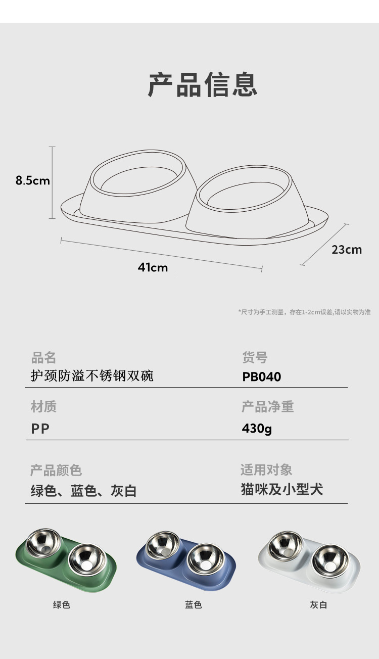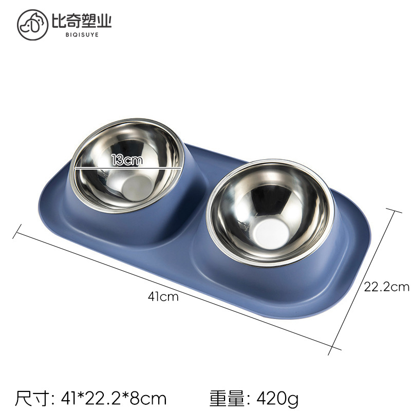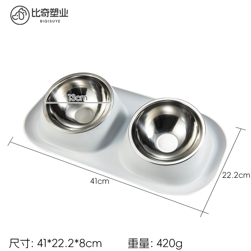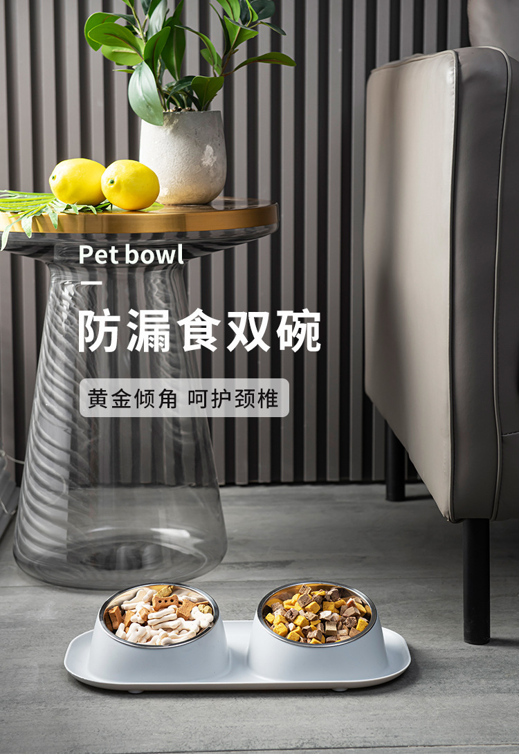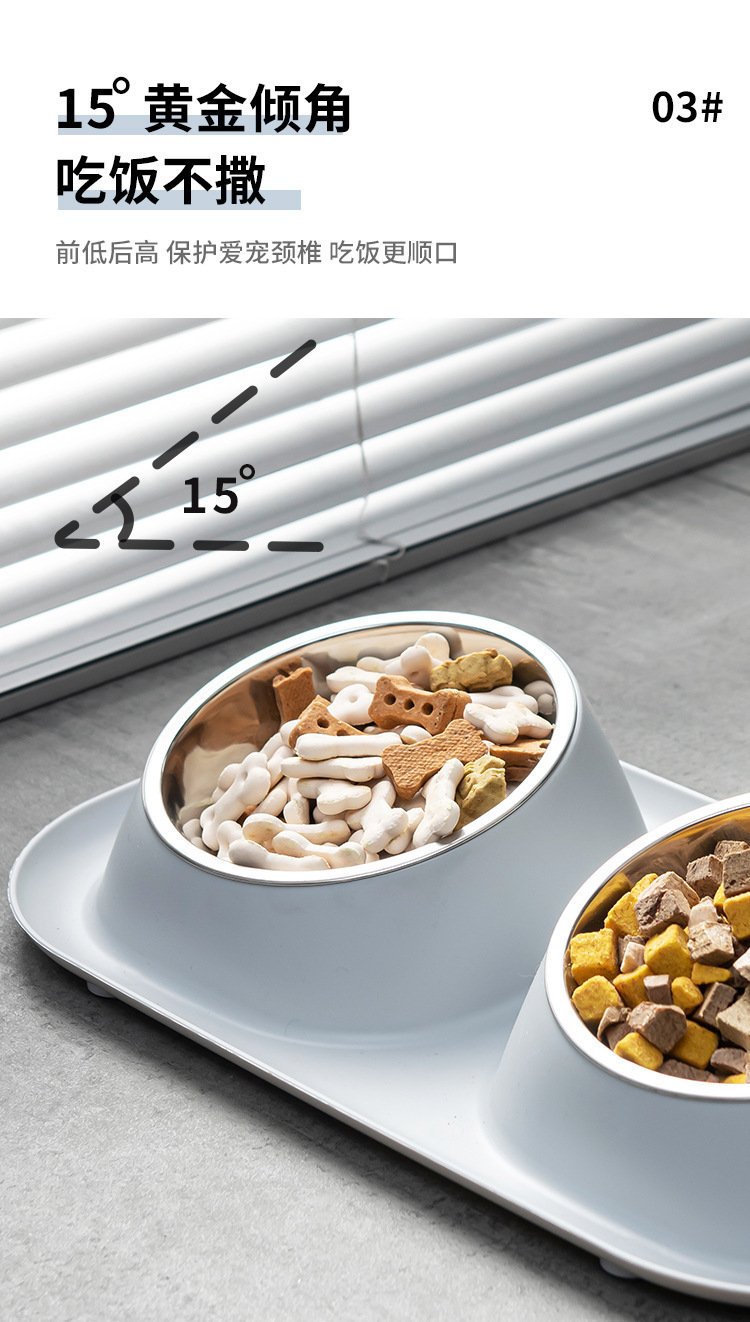 宠物碗猫咪狗狗碗不锈钢防漏食盆倾斜保护颈椎双碗一体喂食器