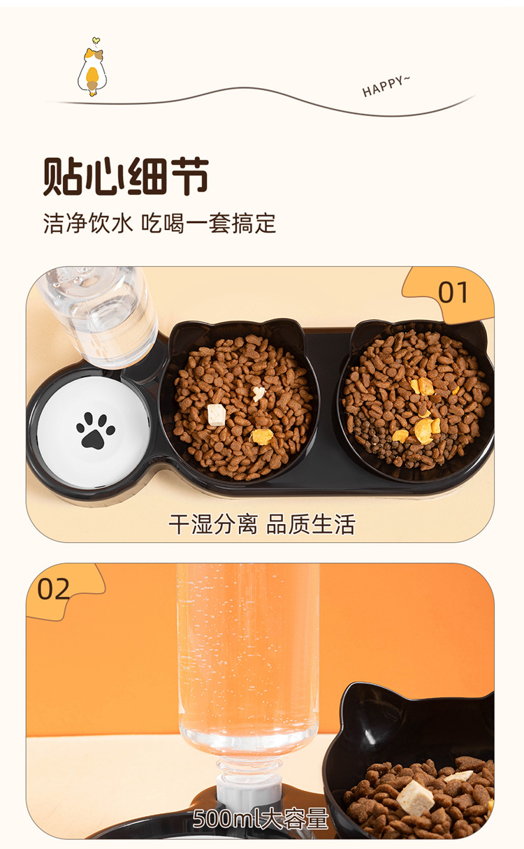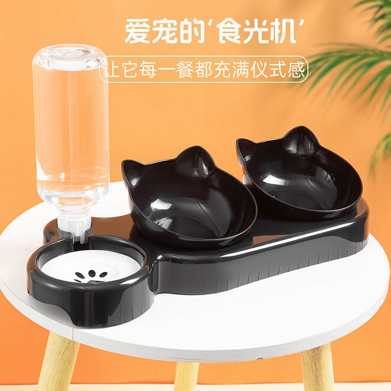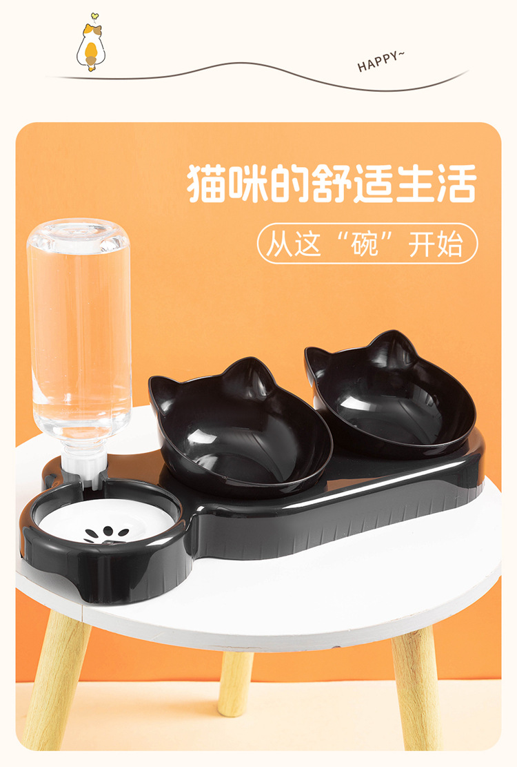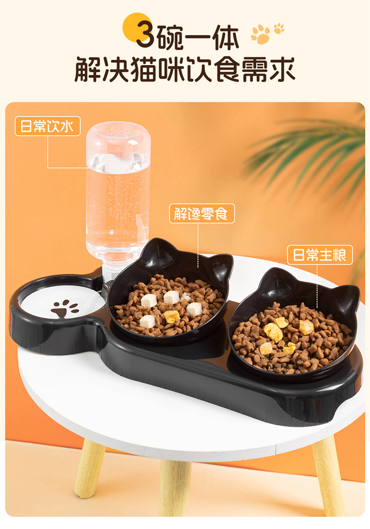猫碗双碗狗碗斜口保护颈椎自动饮水食盆防打翻猫粮狗饭盆猫咪用品