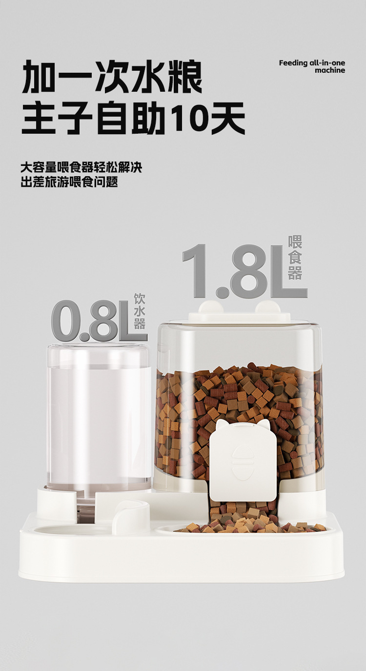 新款猫咪自动喂食器饮水喂食二合一大容量猫盆狗碗防打翻宠物用品