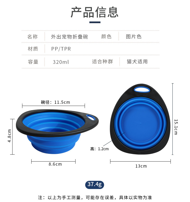 狗狗外出折叠碗饮水碗便携式狗碗户外喝水食盆宠物碗猫咪狗粮碗