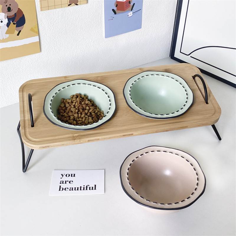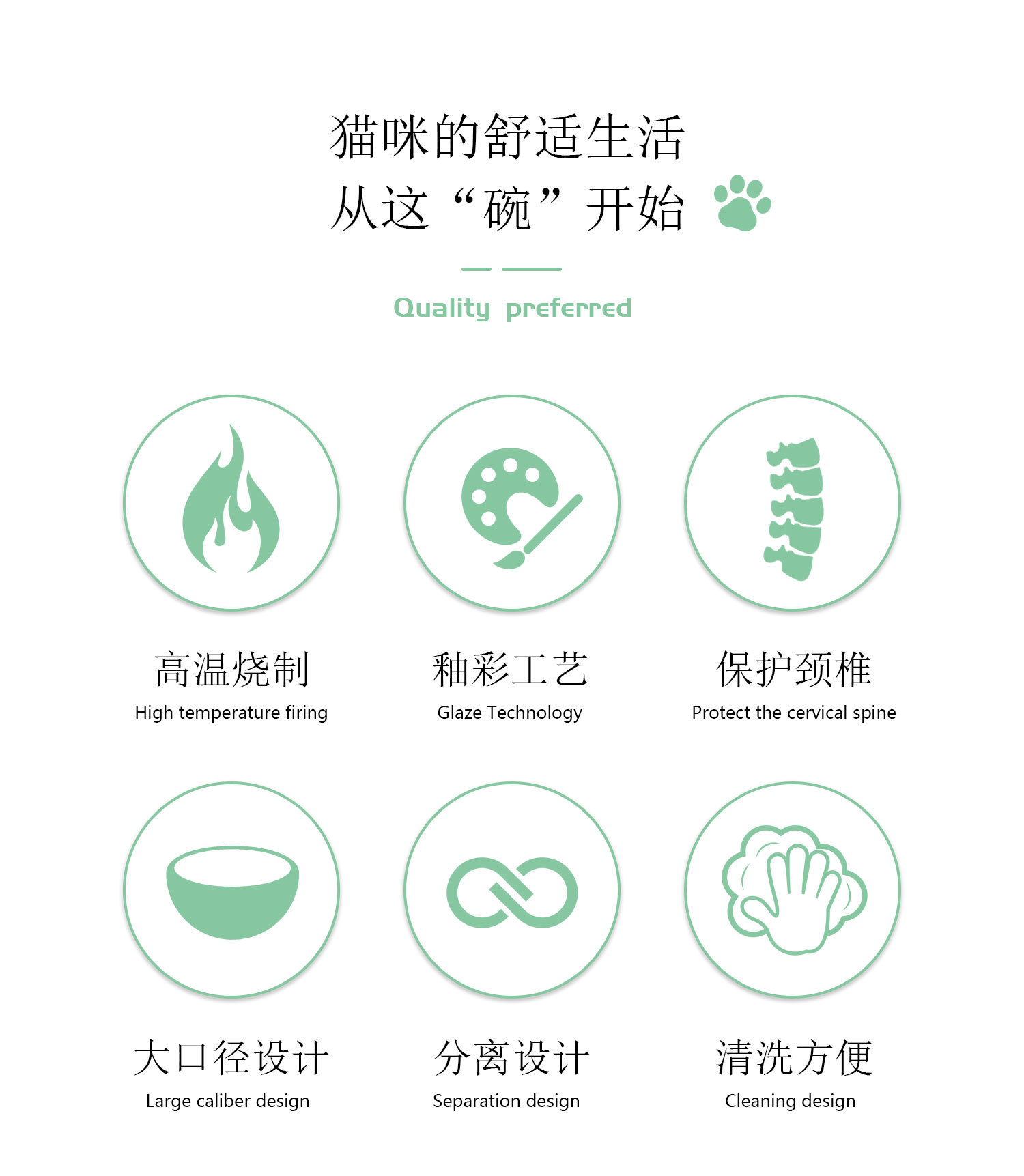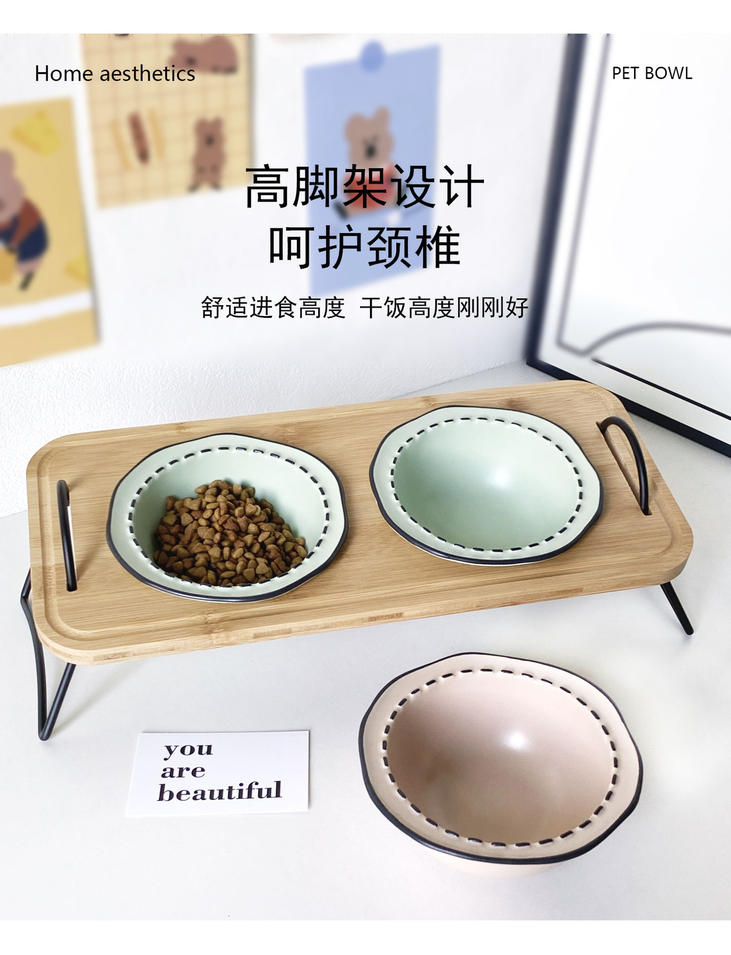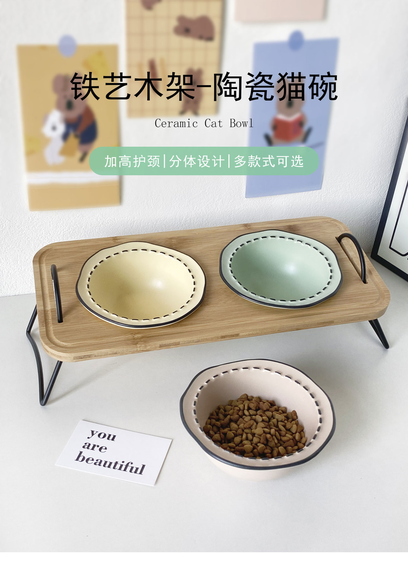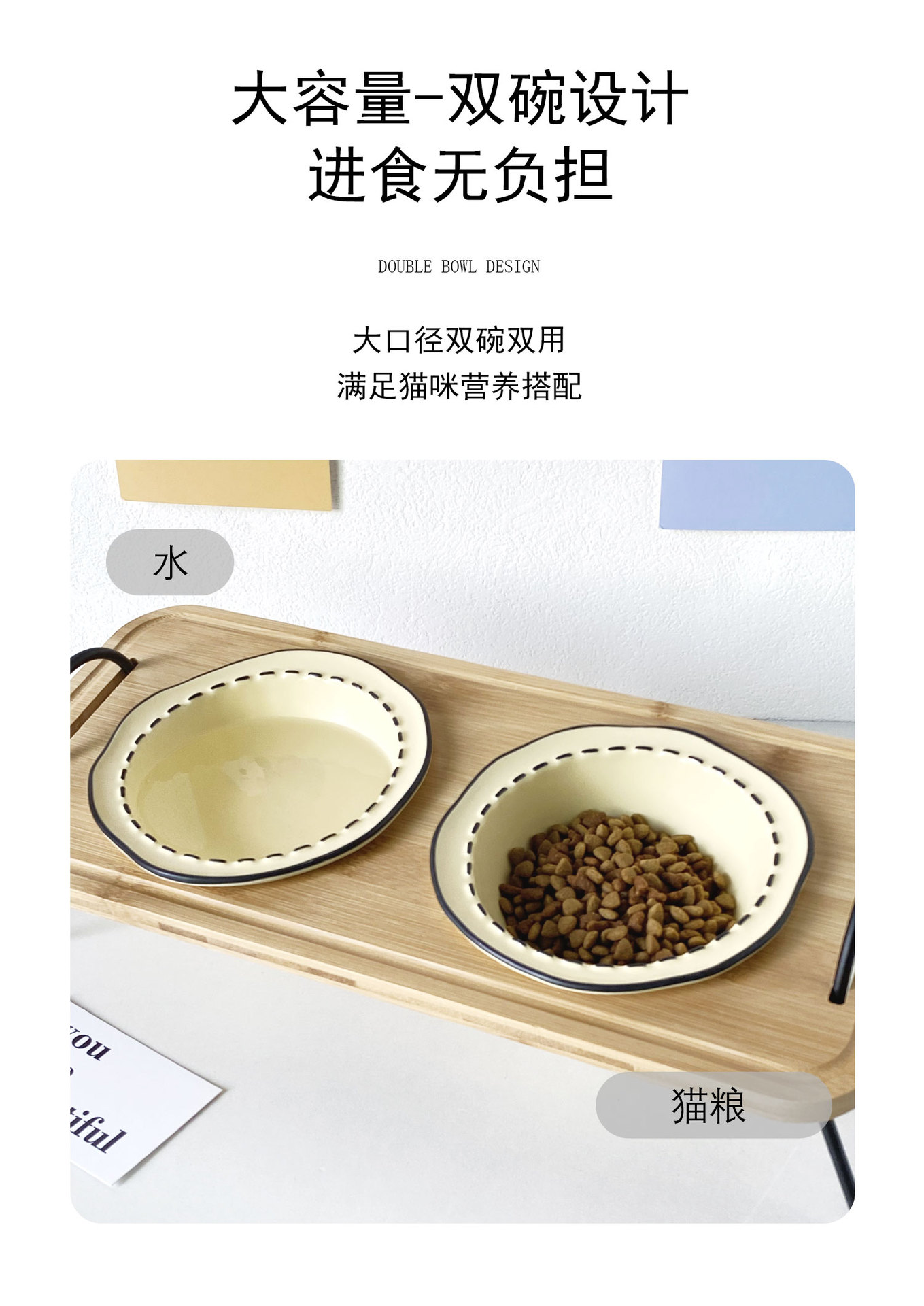 陶瓷猫碗猫咪食盆猫咪粮碗狗盆狗碗饮水碗双碗保护颈椎宠物碗用品