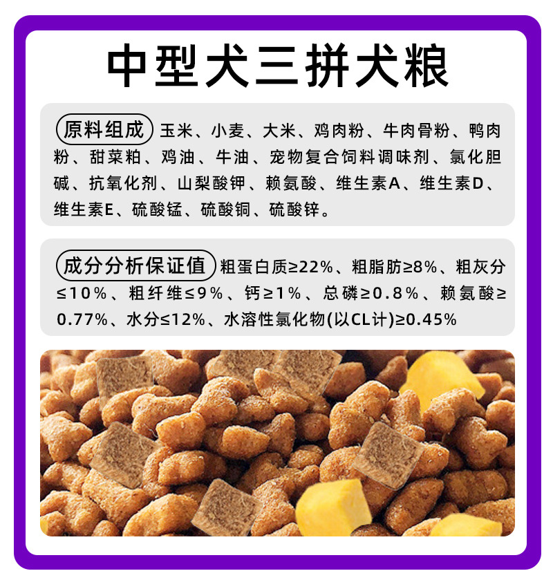 - 中型犬三拼冻干狗粮40斤(10斤*4)