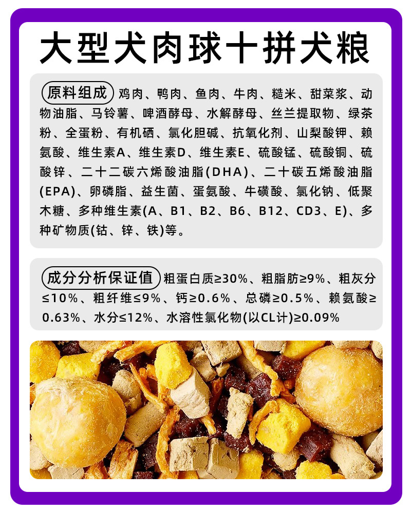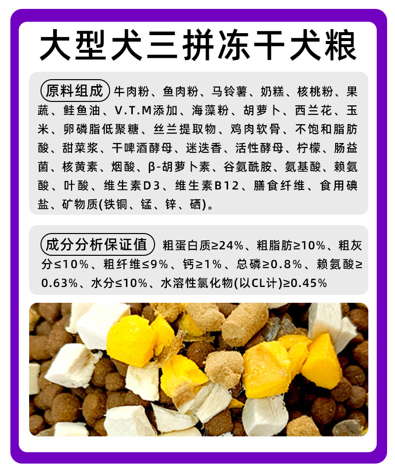 - 大型犬【3拼冻干狗粮】10斤装满嘴肉粒