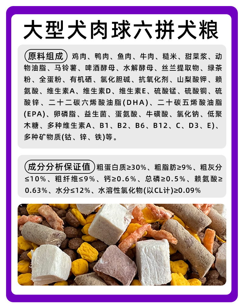 - 大型犬豪华冻干【六拼狗粮】40斤装