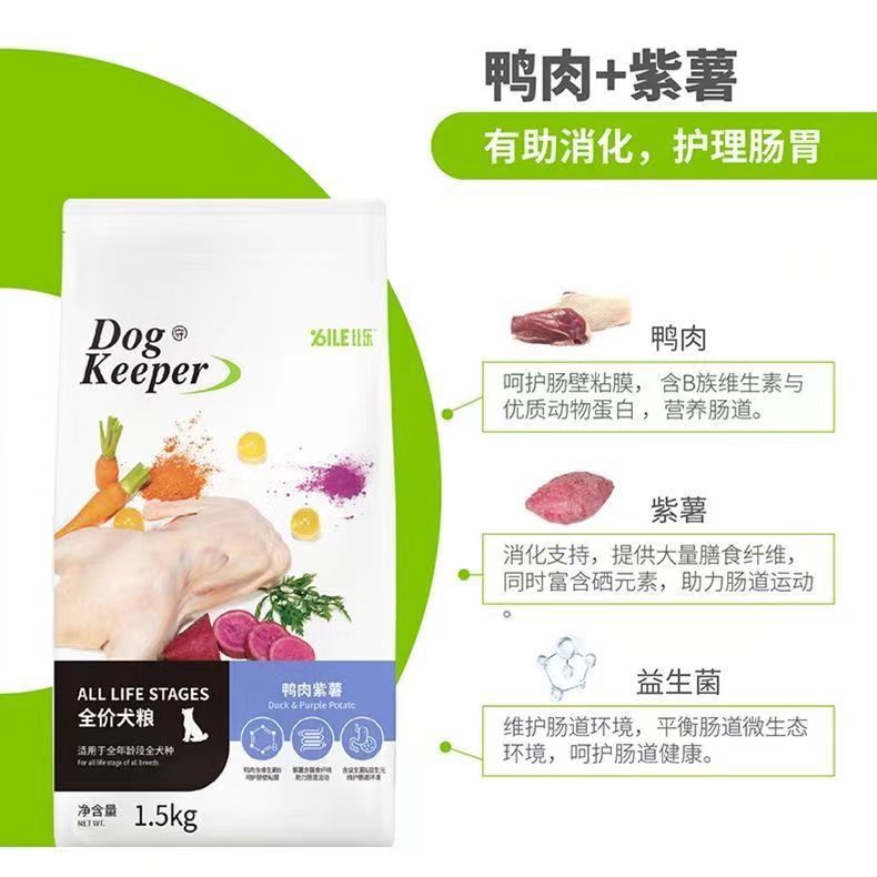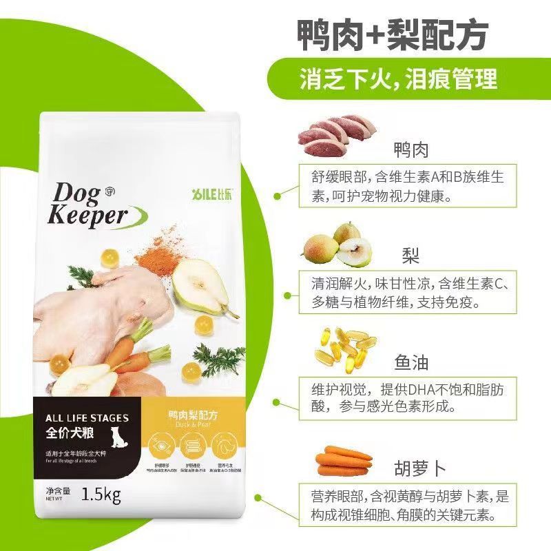 比乐守护者1.5kg鸭肉梨紫薯成幼犬粮泰迪贵宾比熊粮24斤宠物狗粮