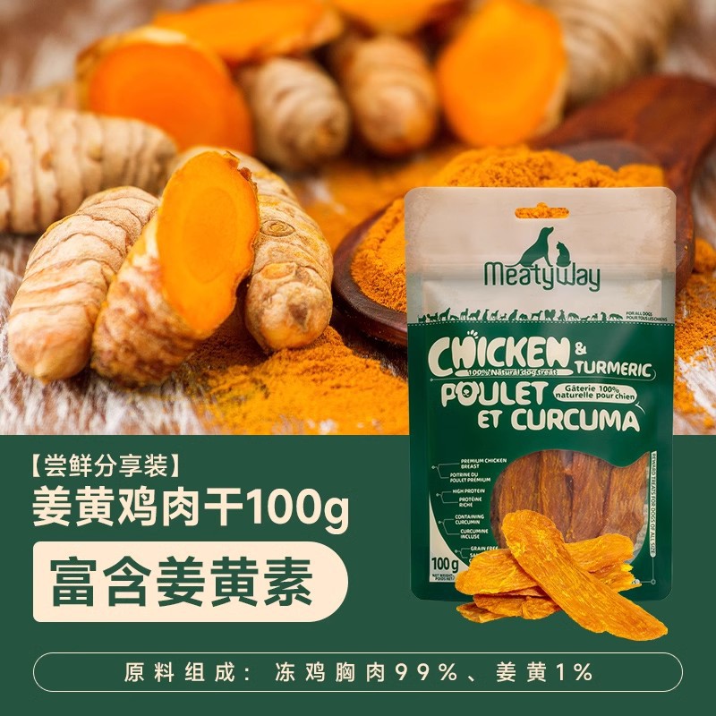 - 【带码新口味】犬用姜黄鸡肉干100g