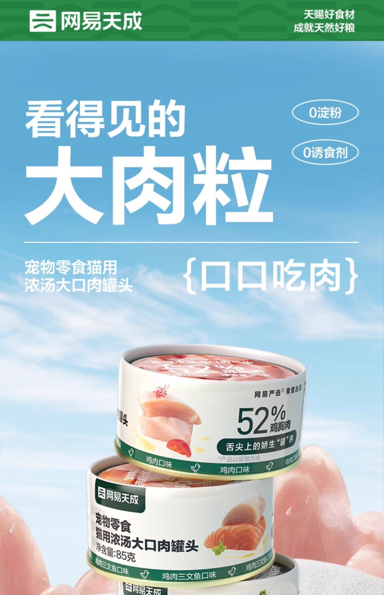 网易天成网易严选浓汤大口肉罐头猫罐头湿粮主食罐猫咪零食85g