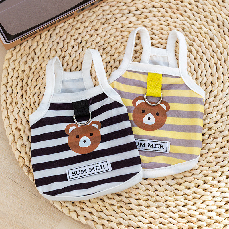 条纹卡通牵引吊带狗狗两脚衣小型犬比熊柯基幼犬衣服宠物通用用品