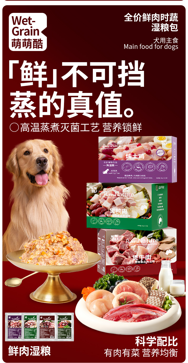 【牛肉蔬菜味】全价狗狗主食蒸鲜湿粮(精致盒装)