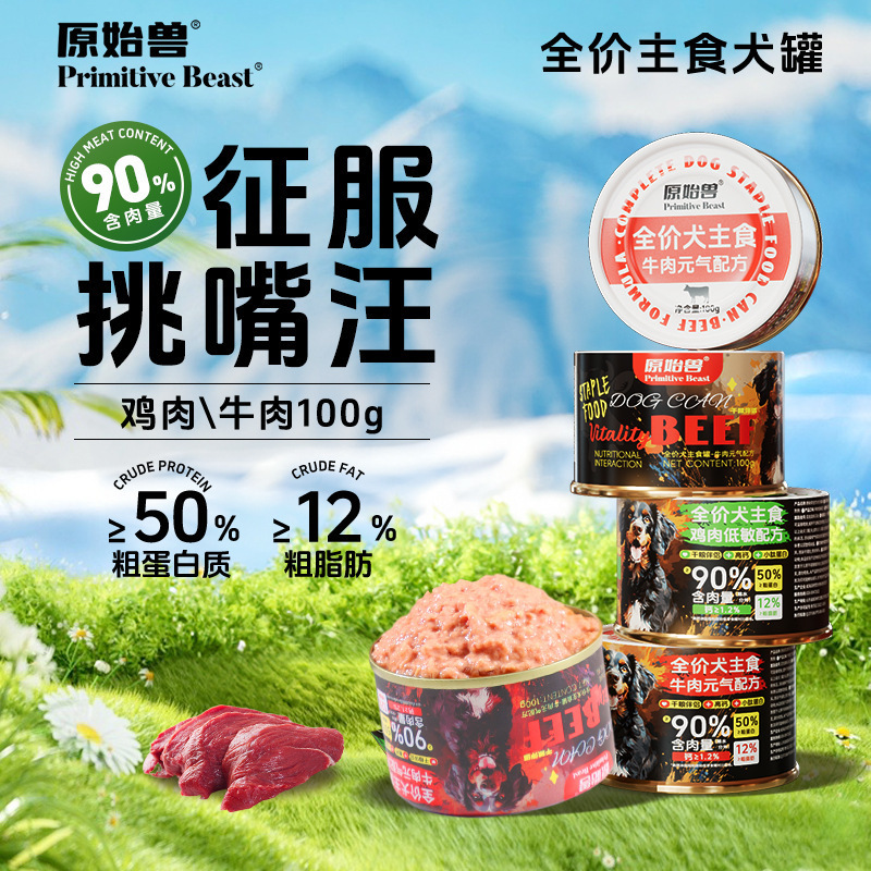 原始兽狗狗主食罐头100g鸡肉牛肉狗狗营养成幼主食湿粮拌饭狗罐头
