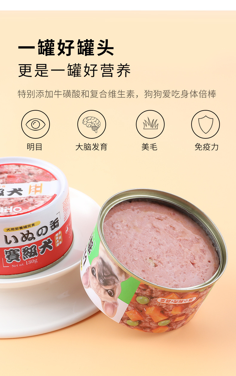 亚禾赛及犬狗罐头幼犬成犬拌饭主食肉类湿粮180g*6罐
