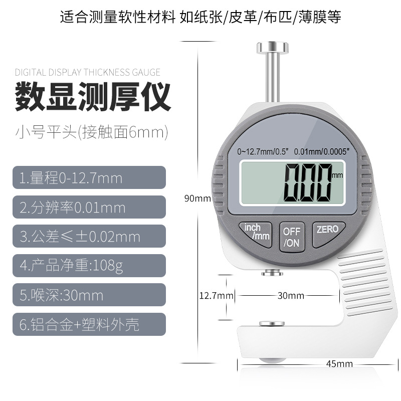 千分尺测厚仪数显测厚规高精度壁厚纸张薄膜测厚度卡尺