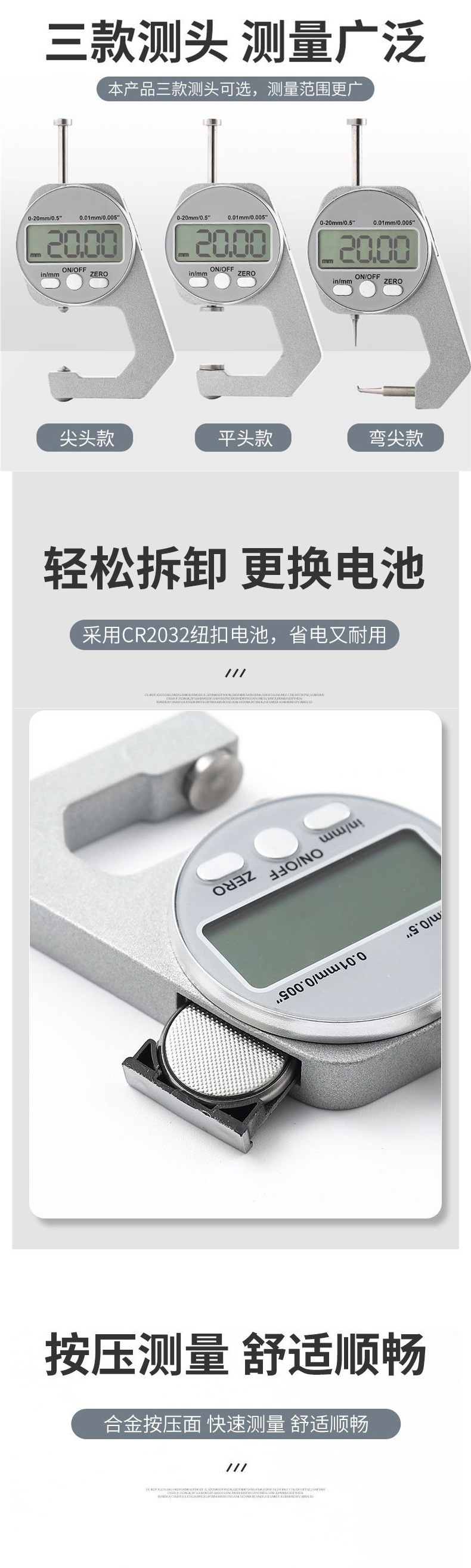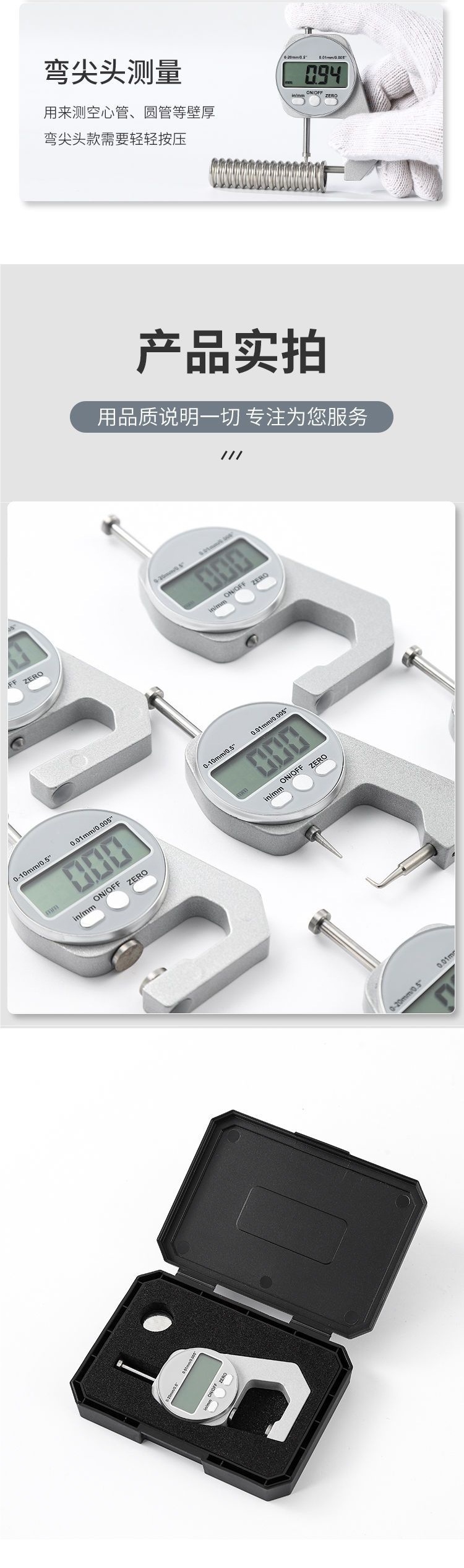电子数显测厚规高精度千分卡尺玻璃纸张板材测量仪平头尖头厚度表