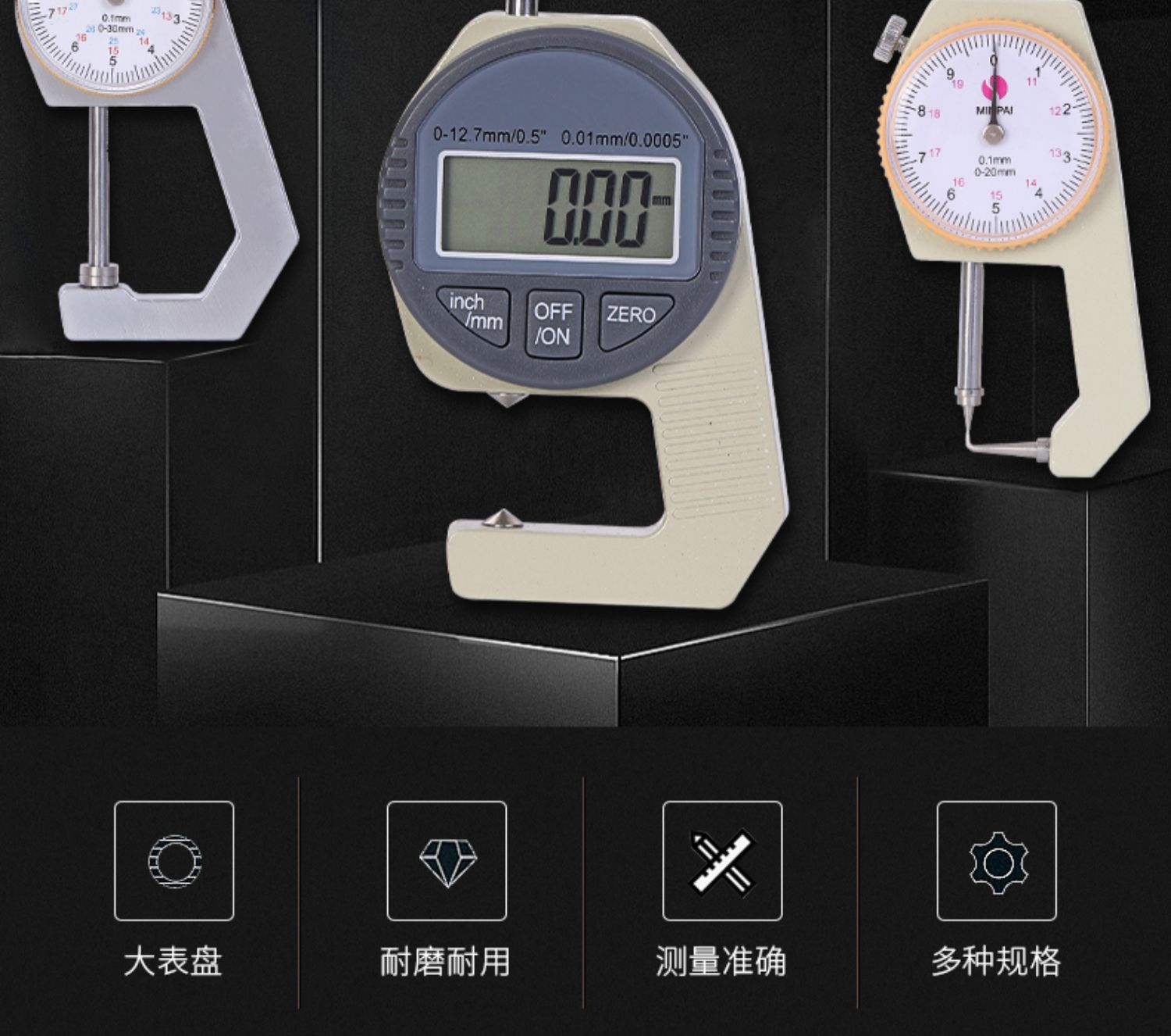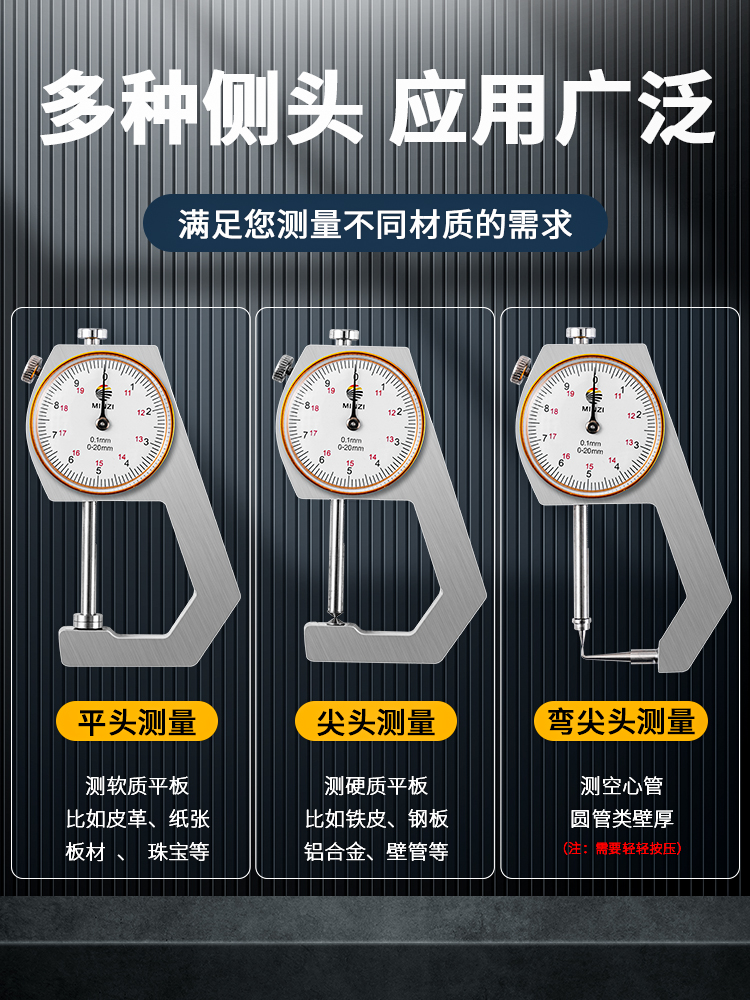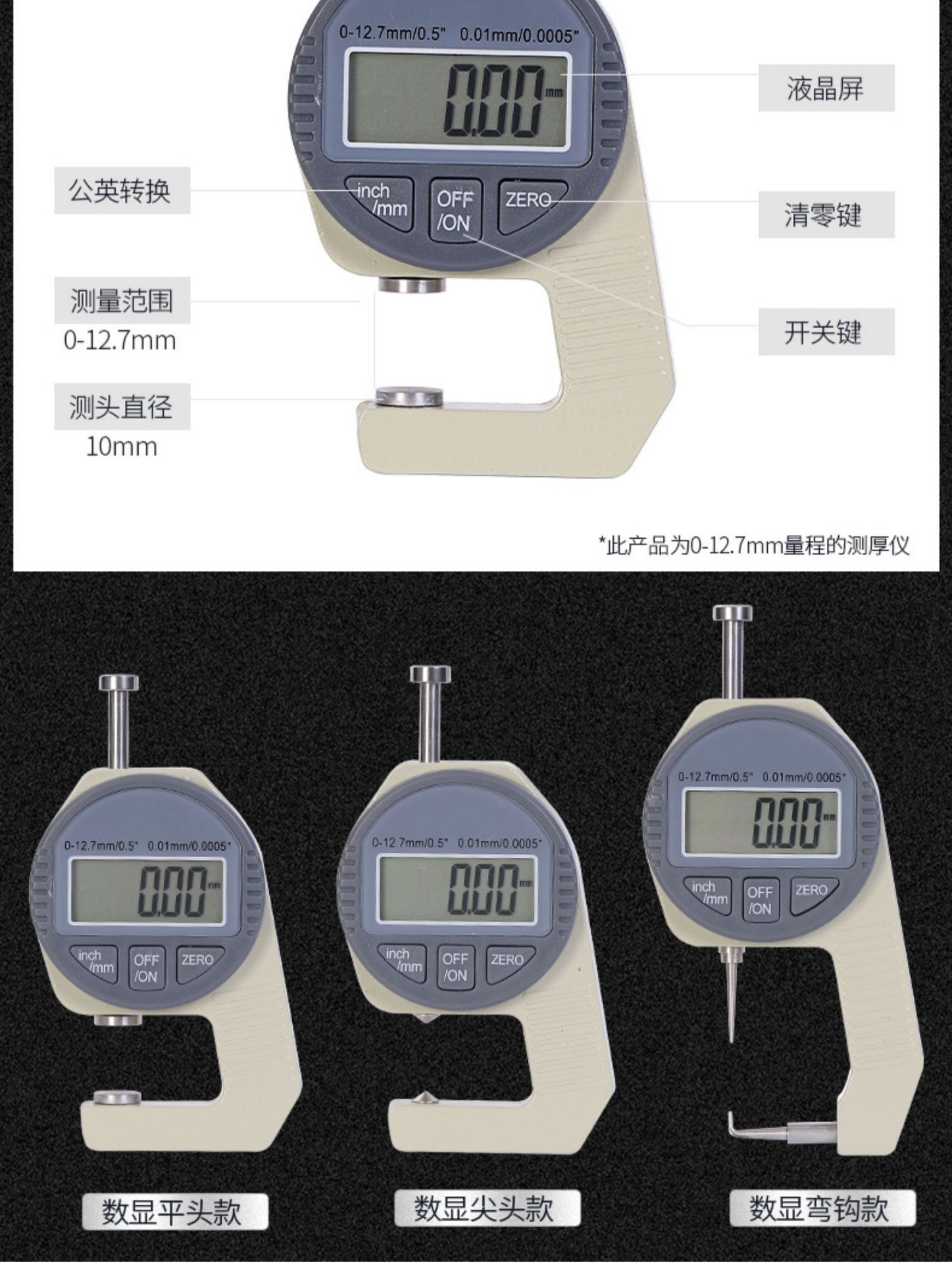 千分尺测厚仪测厚度高精度卡尺数显测厚规钢管厚度表平头尖头弯尖