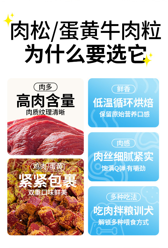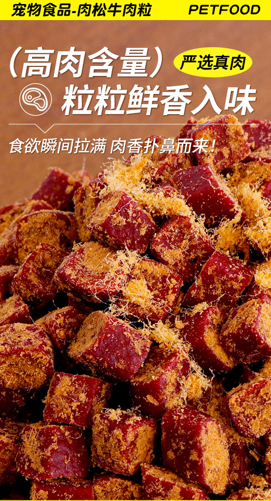 狗狗零食肉松牛肉粒500g大中小型犬拌狗粮训练奖励磨牙棒