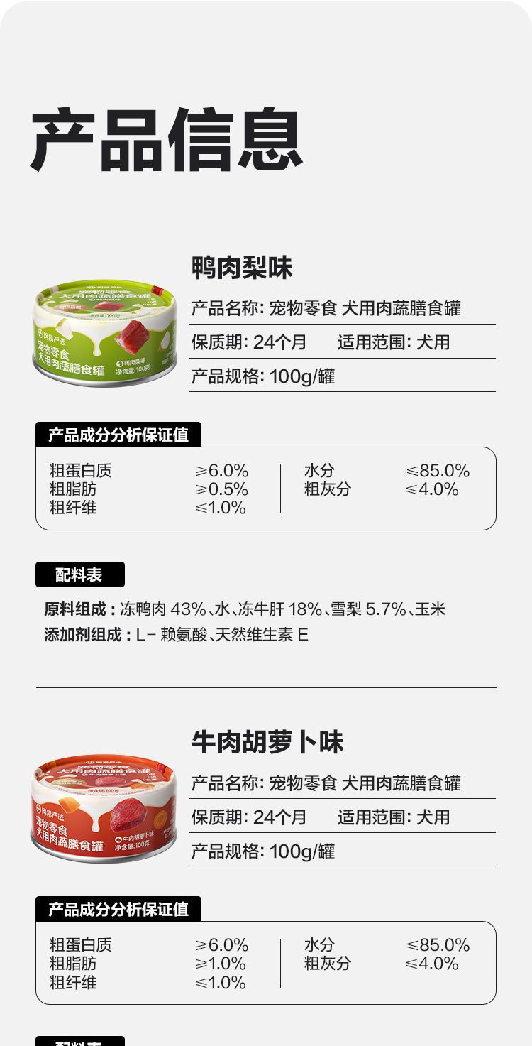 网易严选网易天成狗狗零食罐头营养肉蔬膳食罐湿粮犬用宠物罐头