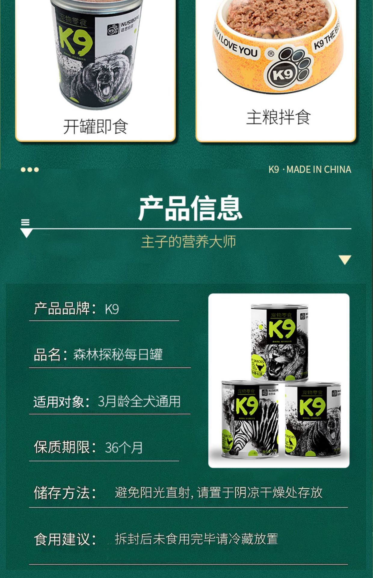 K9雨林探秘狗罐头375g每日罐成幼犬狗狗拌饭湿粮零食小中大型犬