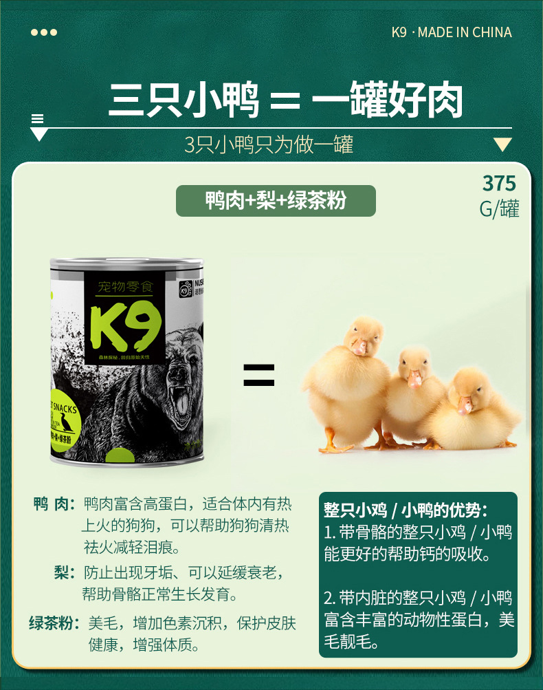 鸭肉+梨+绿茶粉375g