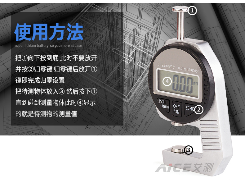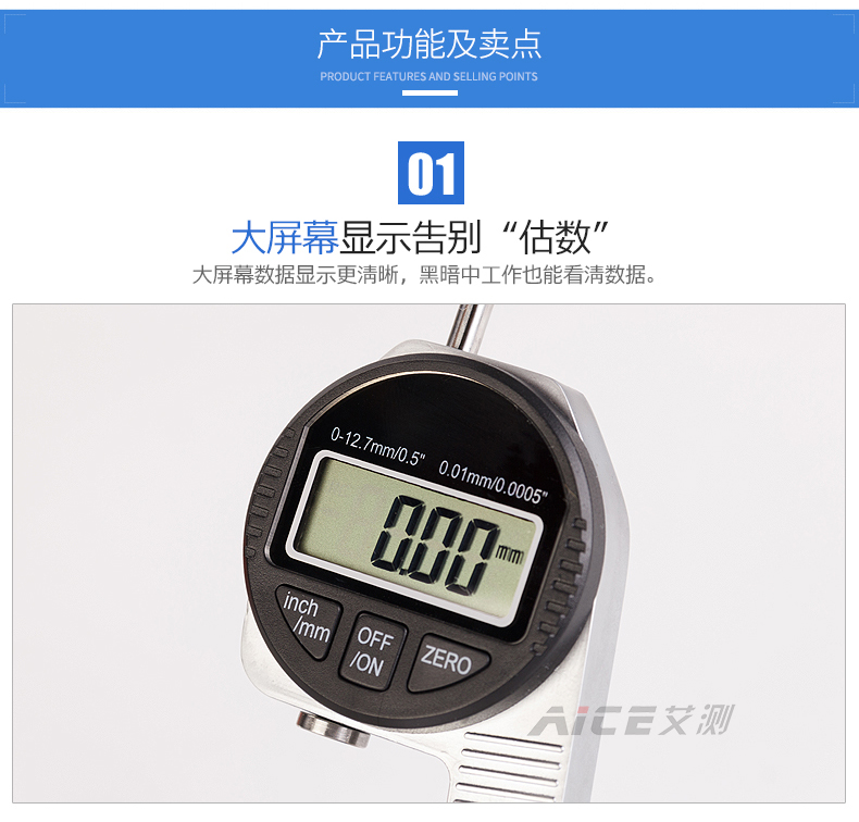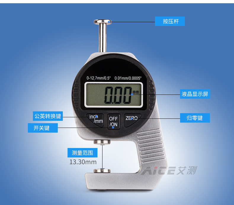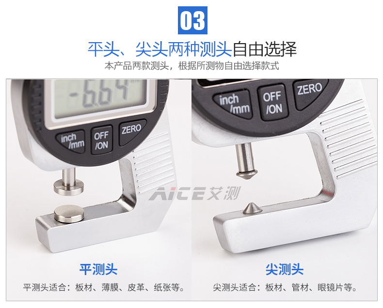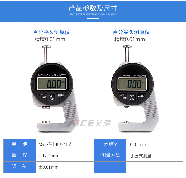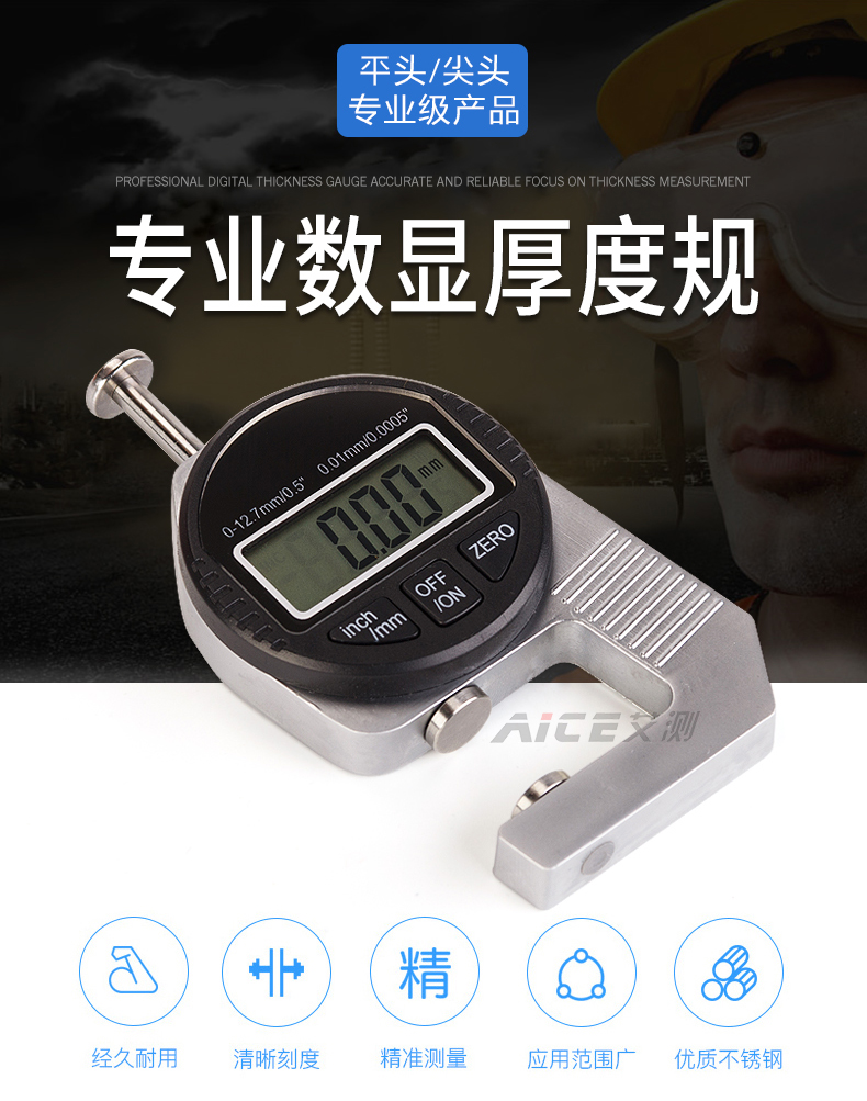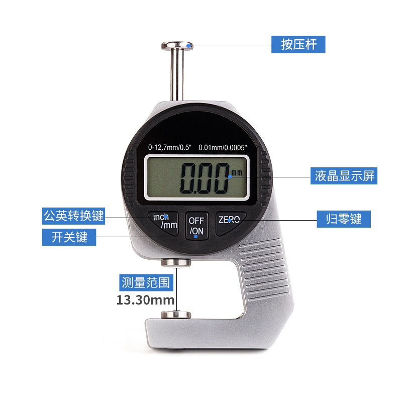 数显百分测厚规皮革表测厚仪厚度计钢板布料板材尖头平头0-12.7