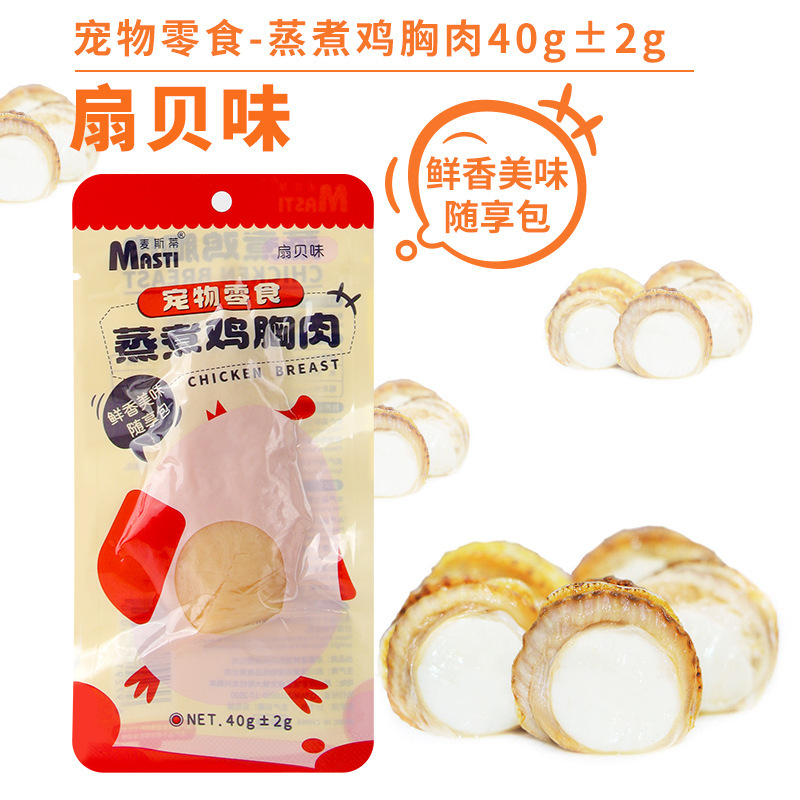 - 麦斯蒂-蒸煮鸡胸-扇贝-40g【补维生素】