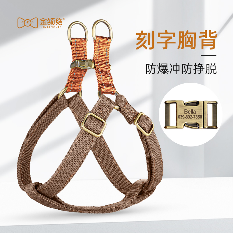 狗狗牵引绳狗胸背刻字防丢小型犬泰迪胸背带中型犬柯基背心式狗绳