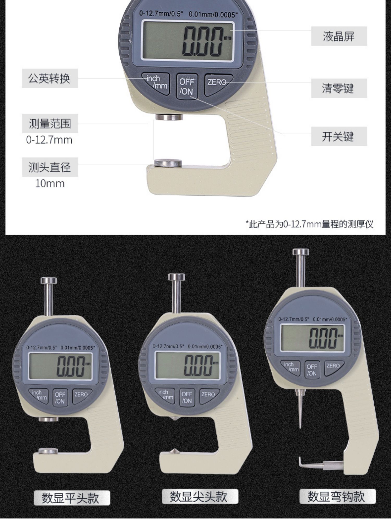 千分尺测厚仪测厚度高精度卡尺数显测厚规钢管厚度表平头尖头弯尖