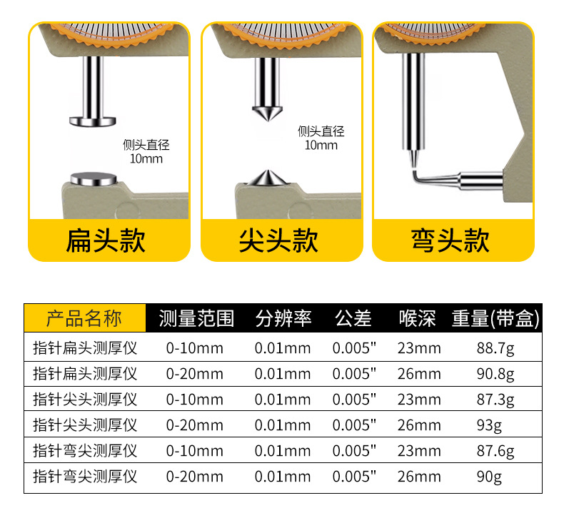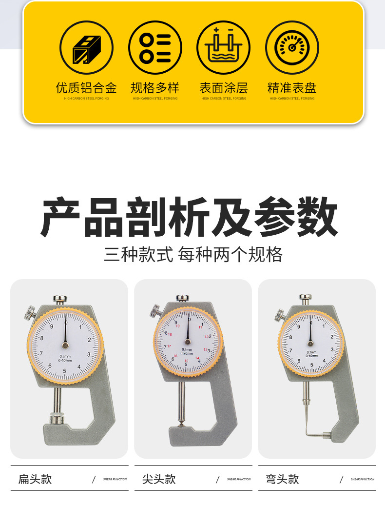 测厚仪高精度厚度仪平头尖头弯钩薄膜钢管钢板珍珠测量尺