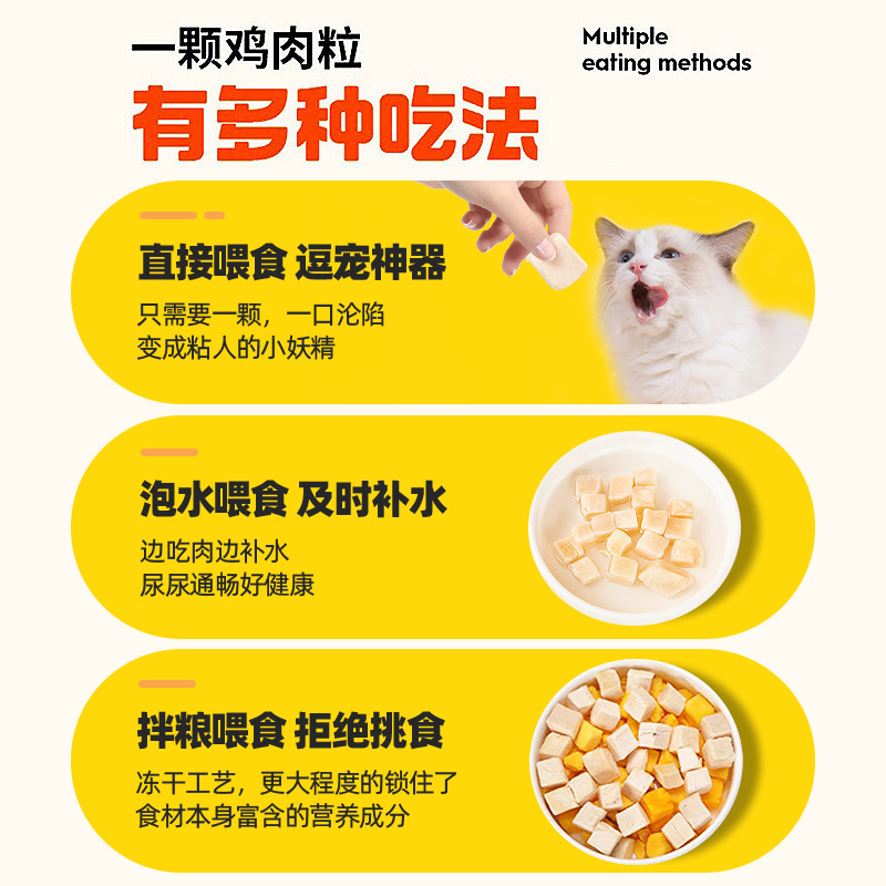 宠物零食冻干鸡肉粒猫咪狗狗磨牙鸡胸肉猫草棒磷虾冻干桶猫粮
