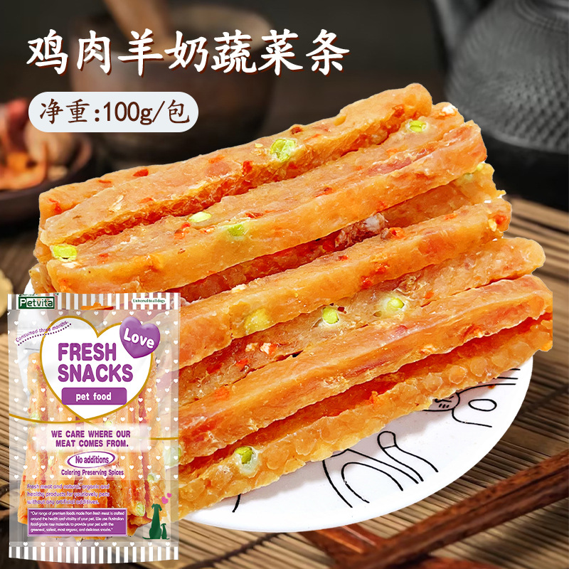 130g羊奶蔬菜鸡胸肉条(110包/箱)