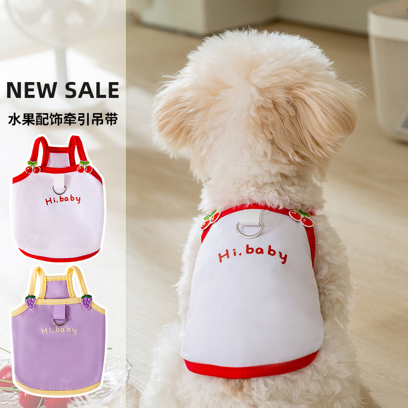 卡通牵引吊带背心夏季薄款透气小比熊泰迪博美犬宠物通用狗狗衣服