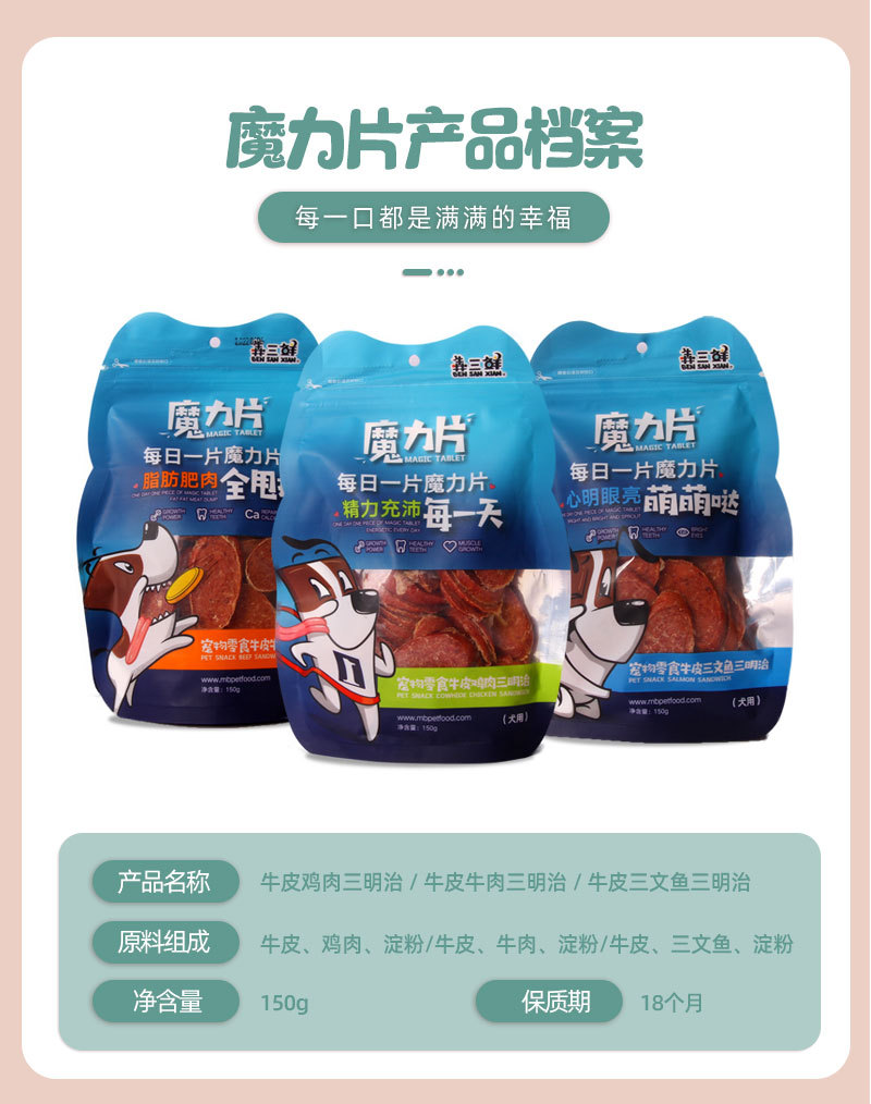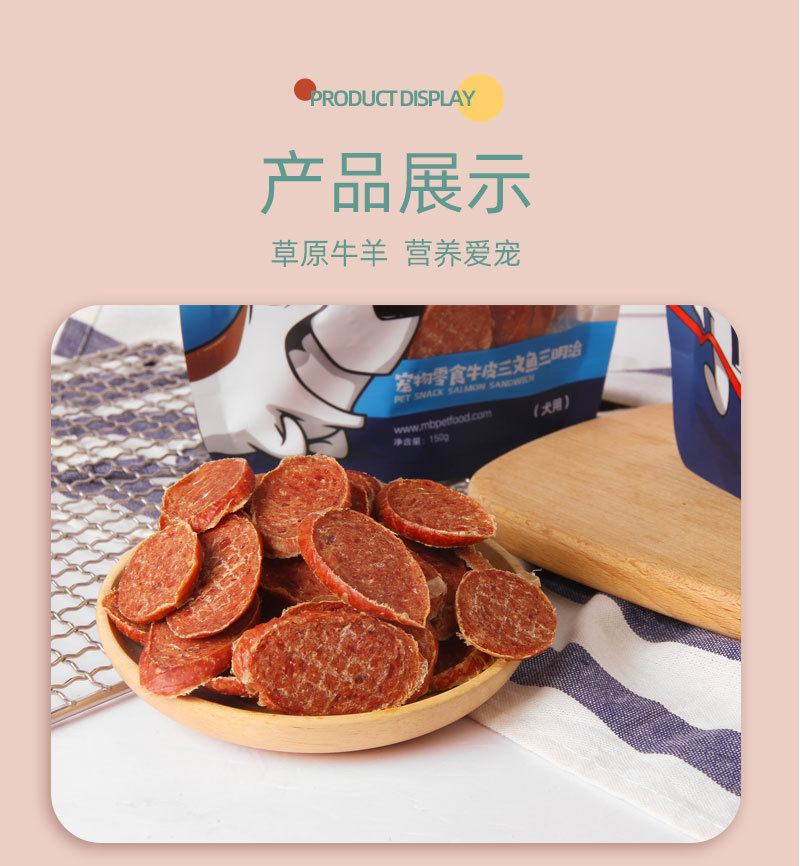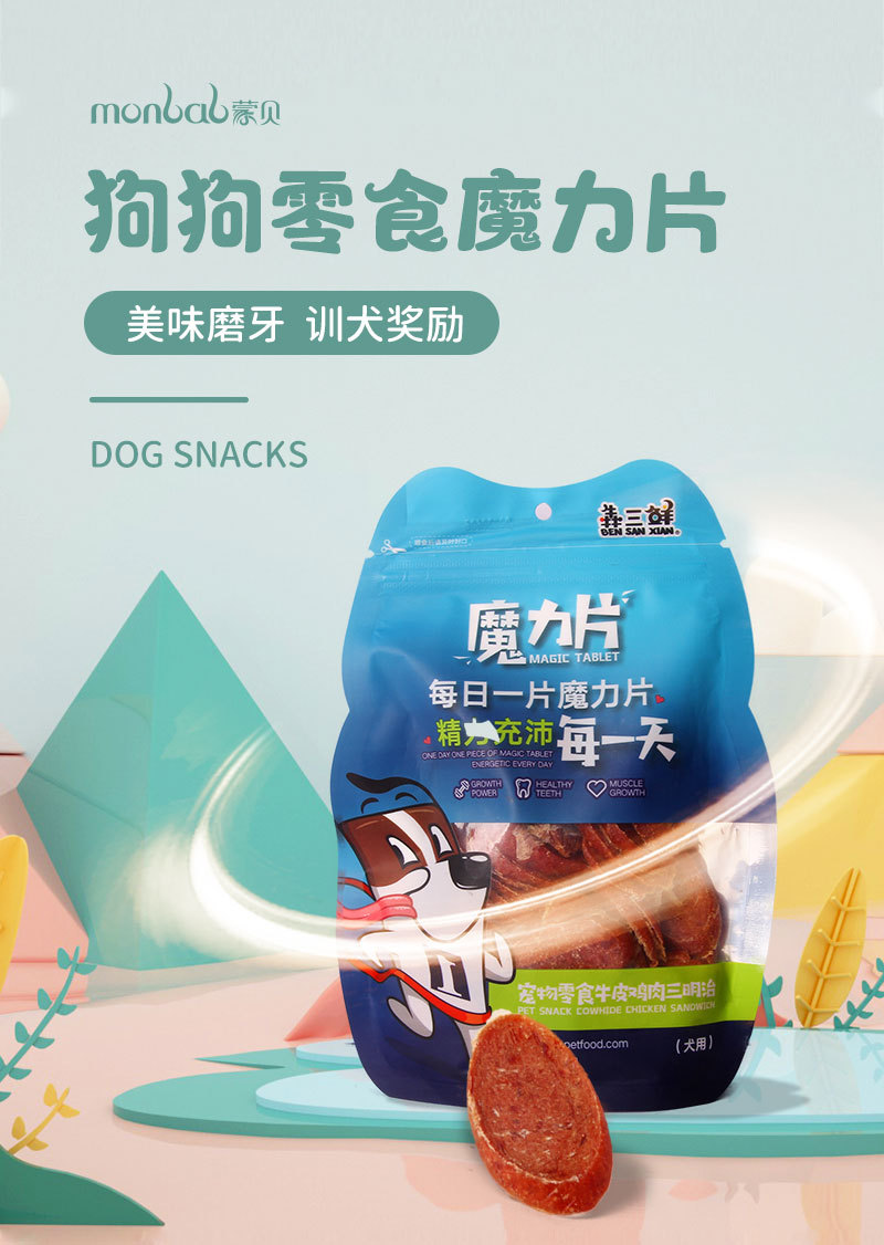 蒙贝宠物零食牛肉鸡肉三文鱼狗食品狗泰迪肉干磨牙通用狗零食