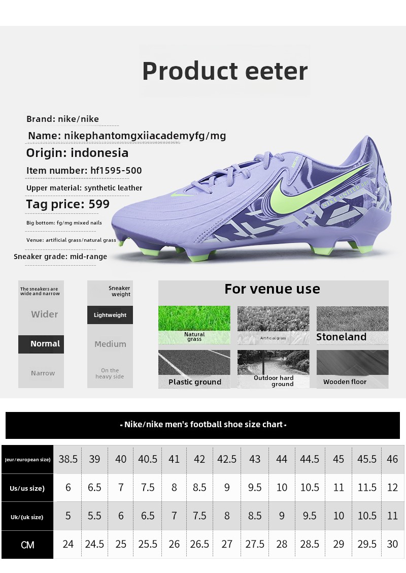 耐克耐克足球鞋男士笨重的幻影Gx2中端Fg/Mg混合钉低帮Hf1595-500