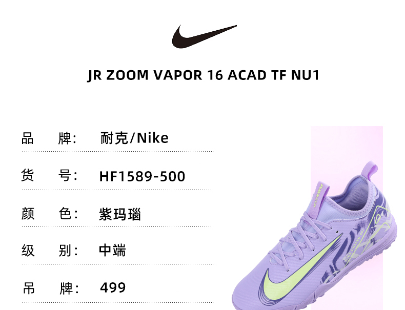 Nike/耐克刺客16 儿童中端ZOOM缓震TF碎钉训练比赛足球鞋HF1589