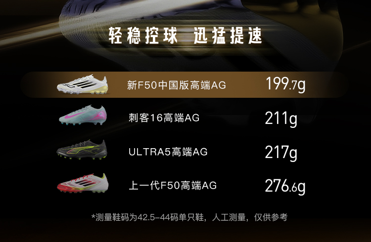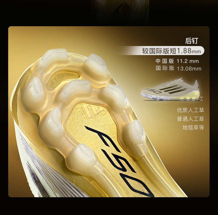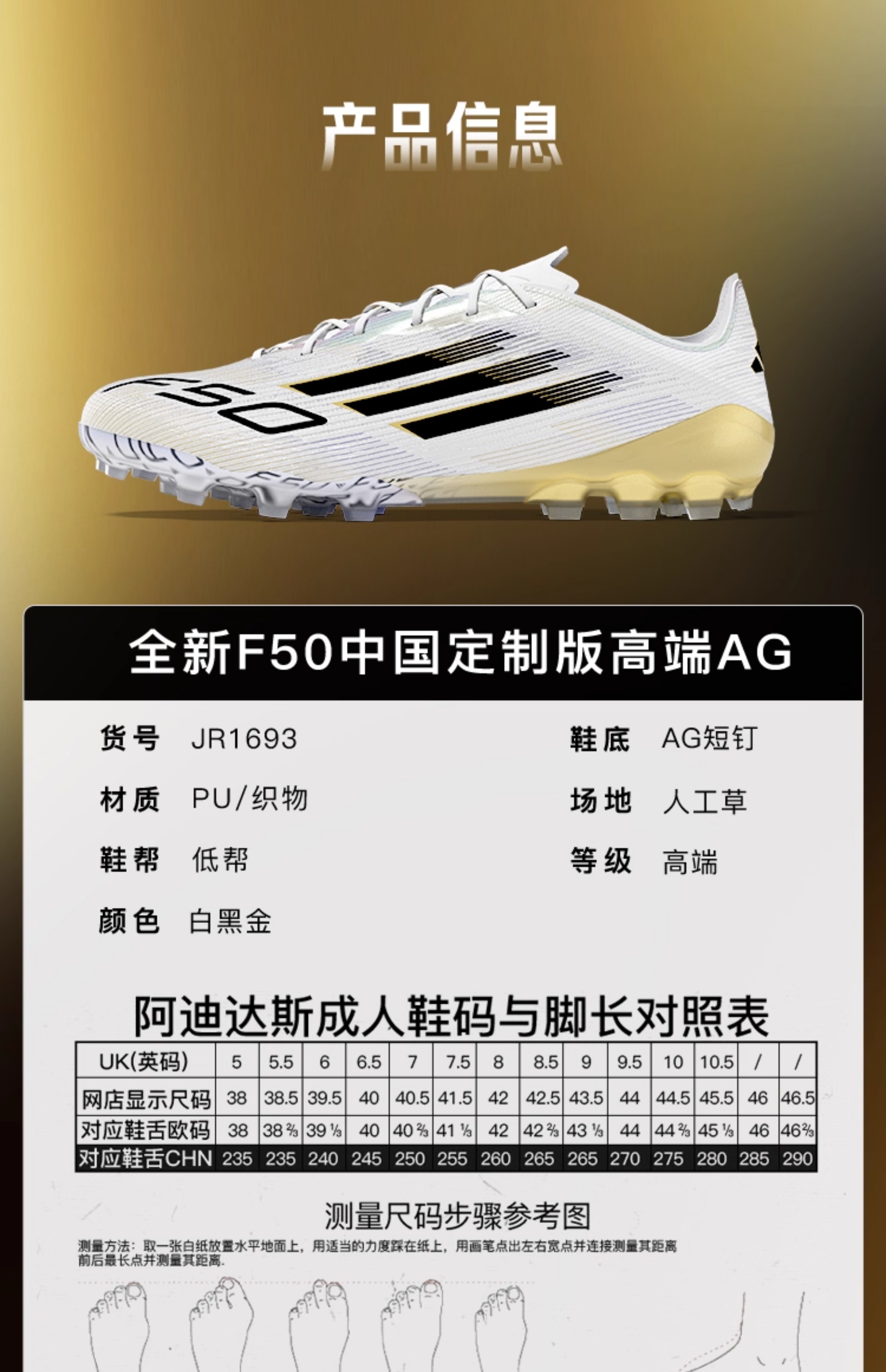 阿迪达斯F50高端新AG短钉大底运动训练足球鞋成人男