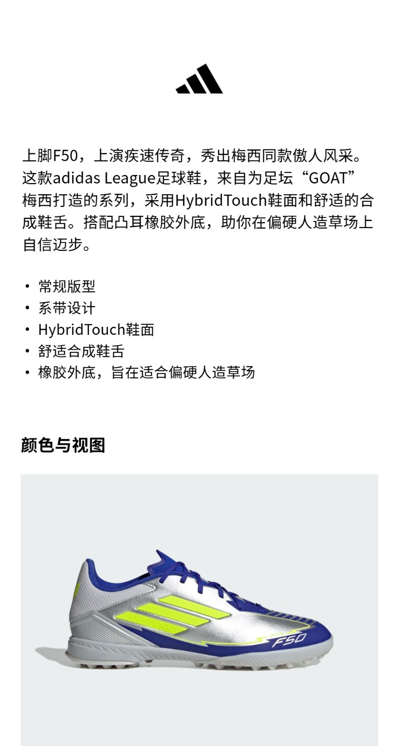 梅西系列F50 LEAGUE TF室外硬地碎钉足球鞋男女adidas阿迪达斯