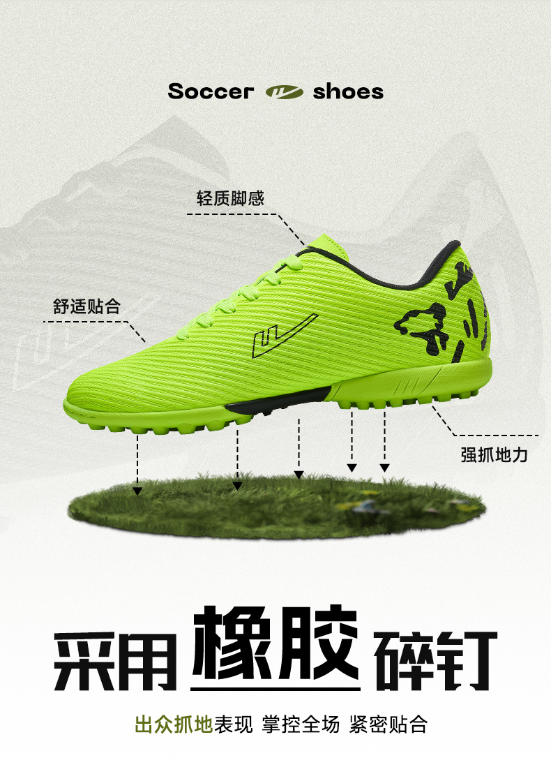 儿童足球鞋室内运动训练鞋透气学生碎钉LLD009透气技术