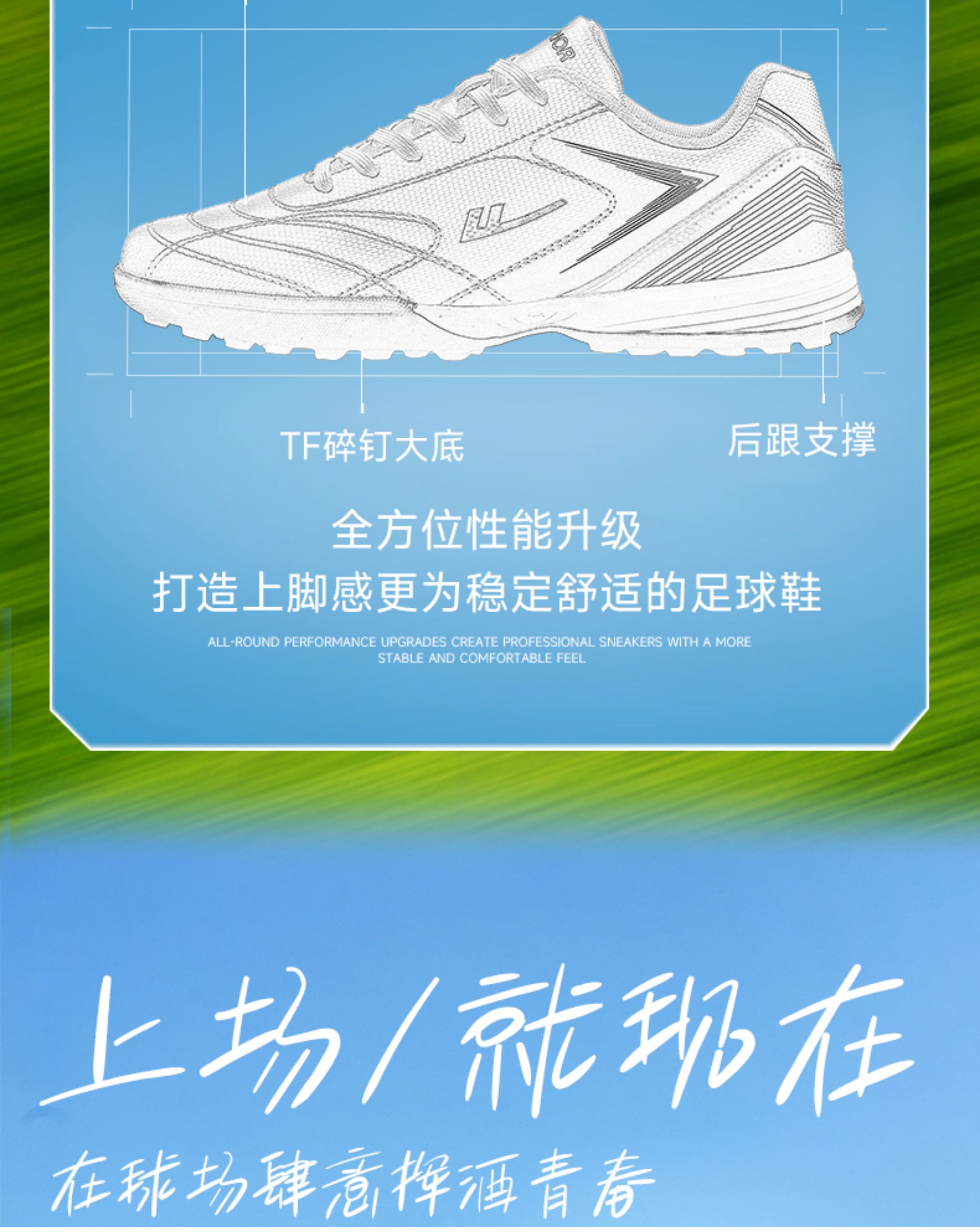 安踏极钉科技足球鞋男TF碎钉草地飞盘鞋专用训练球鞋