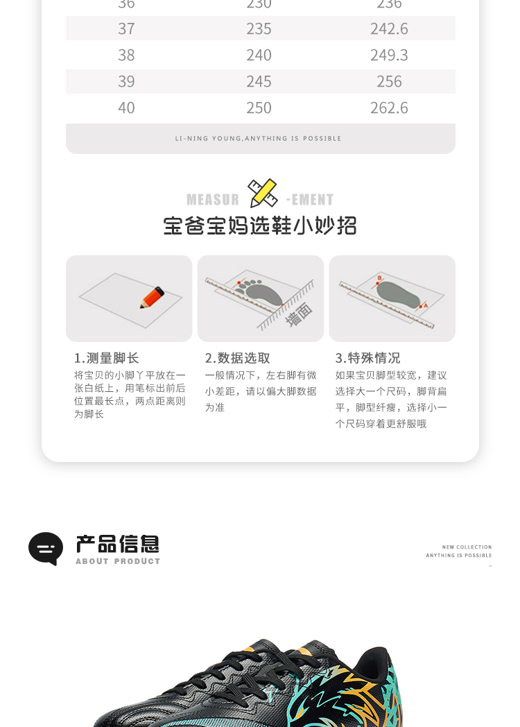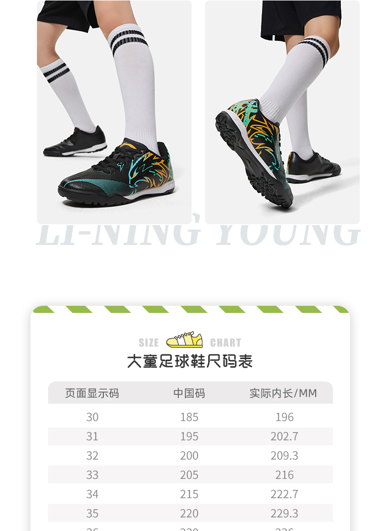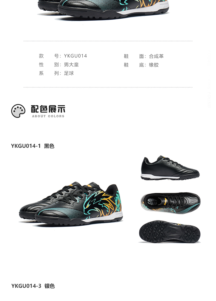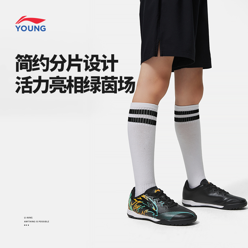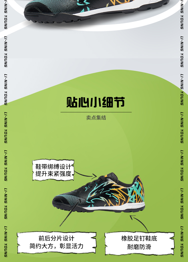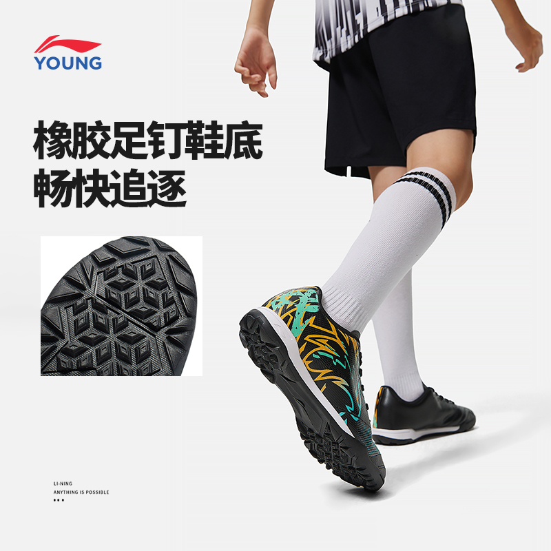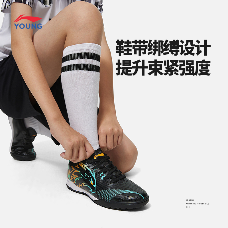 李宁儿童碎钉足球鞋男童中大童强袭少儿专业小学生减震回弹运动鞋