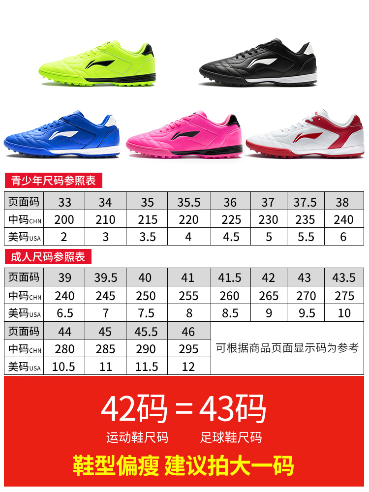 李宁足球鞋男女碎钉成人TF碎钉男童儿童小学生青少年训练比赛正品
