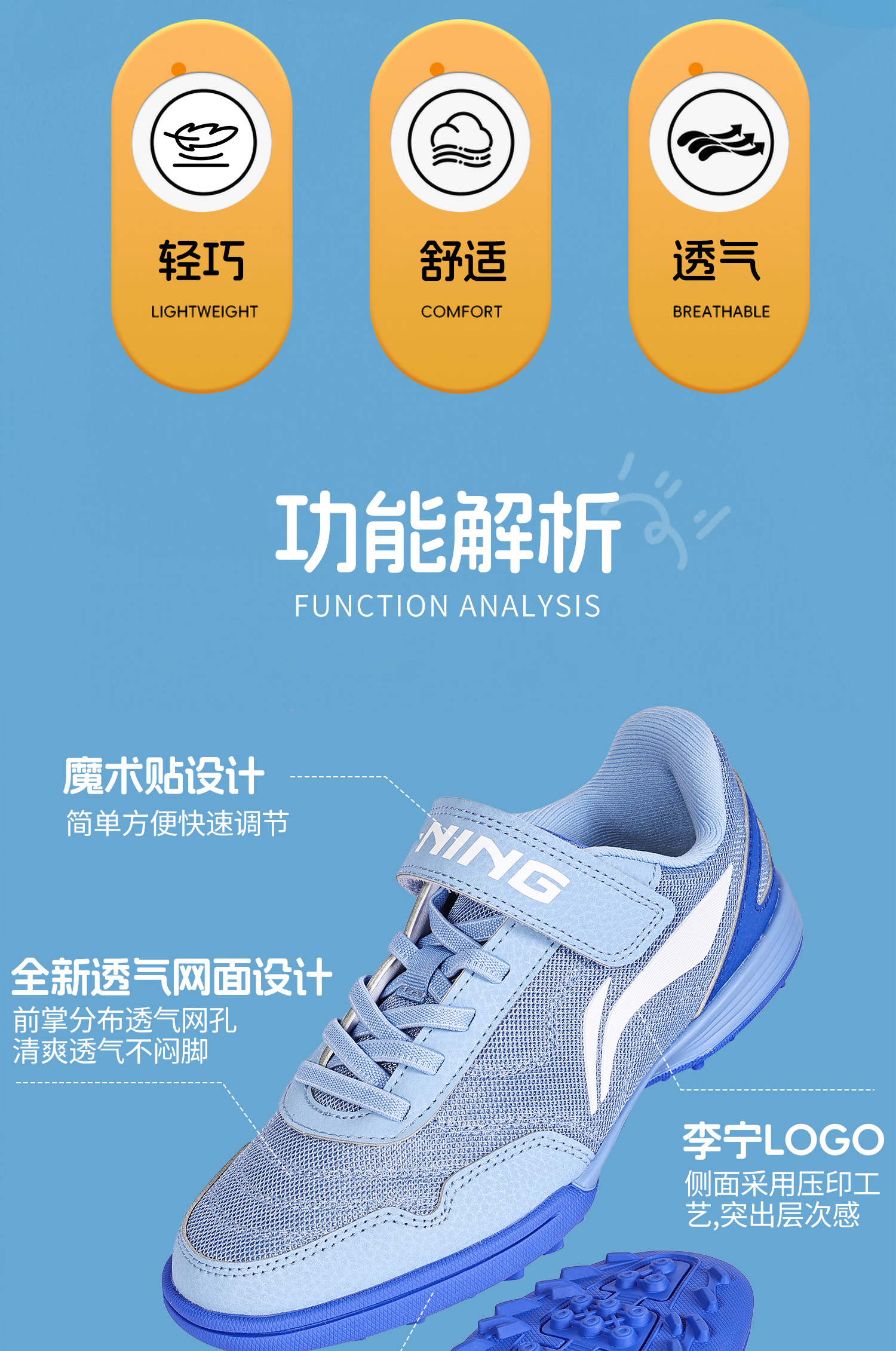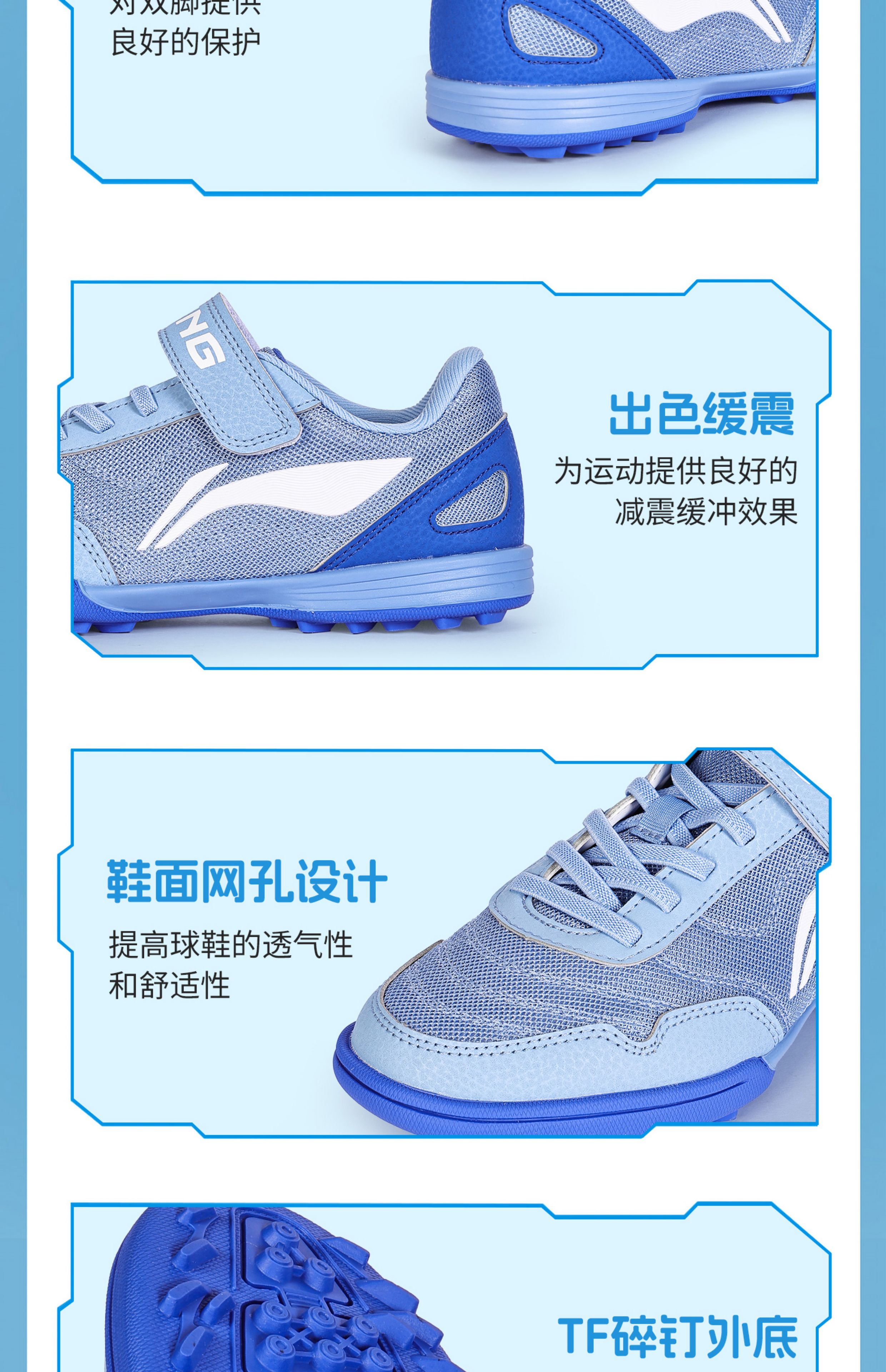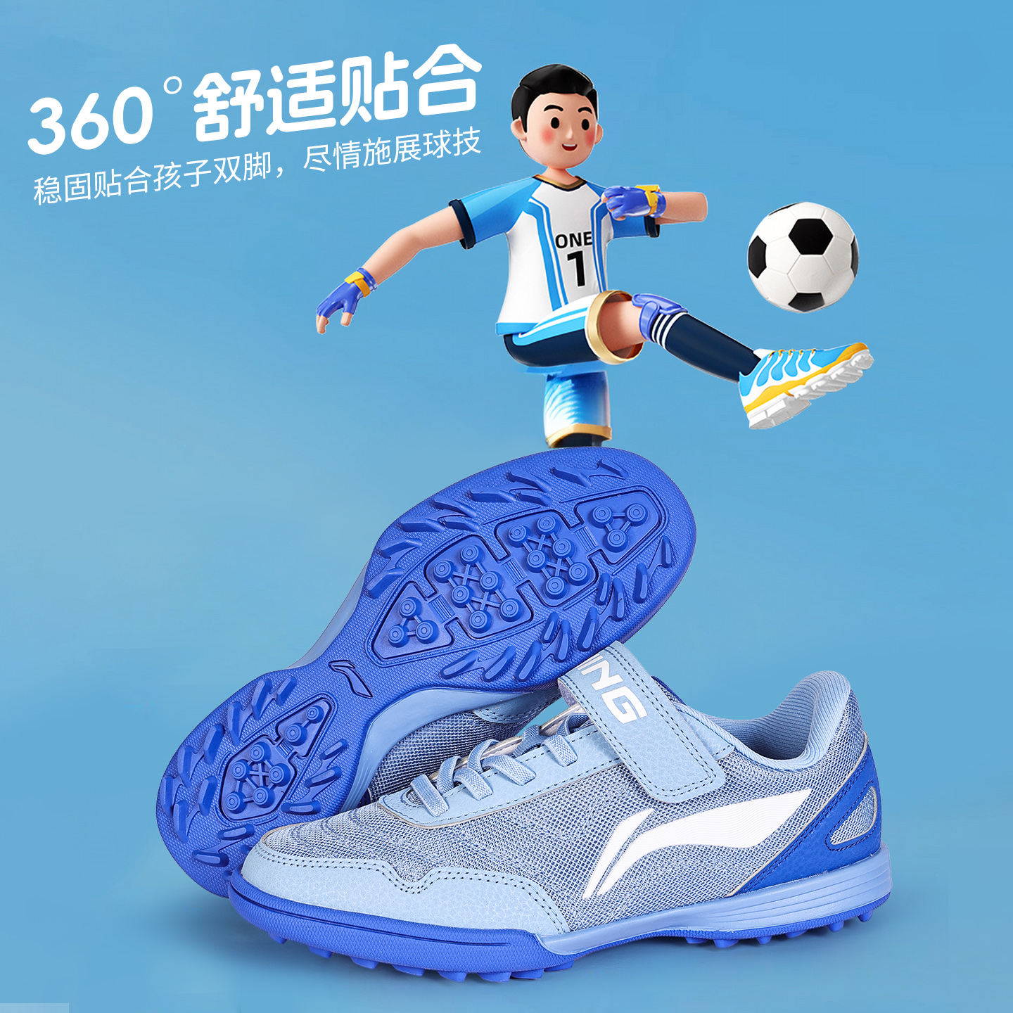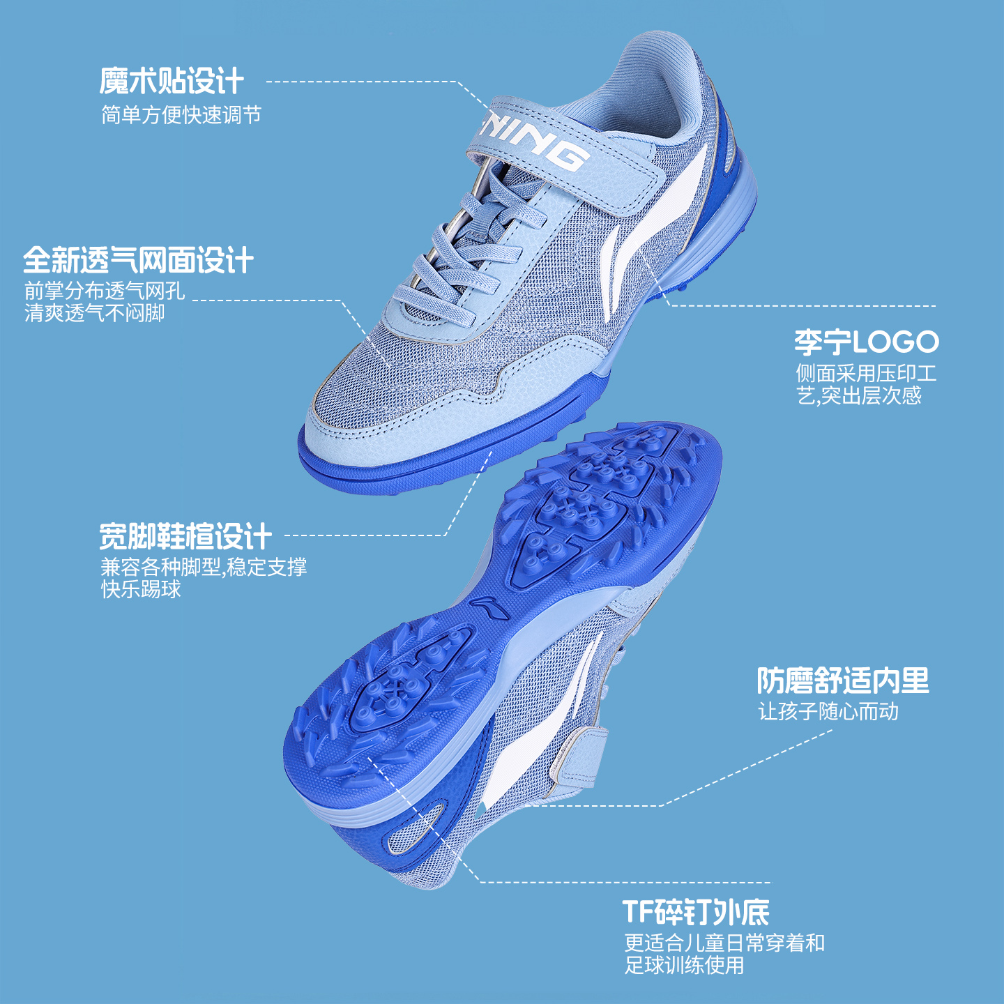 李宁儿童足球鞋男童小学生网面TF碎钉青少年男孩少儿专业训练专用