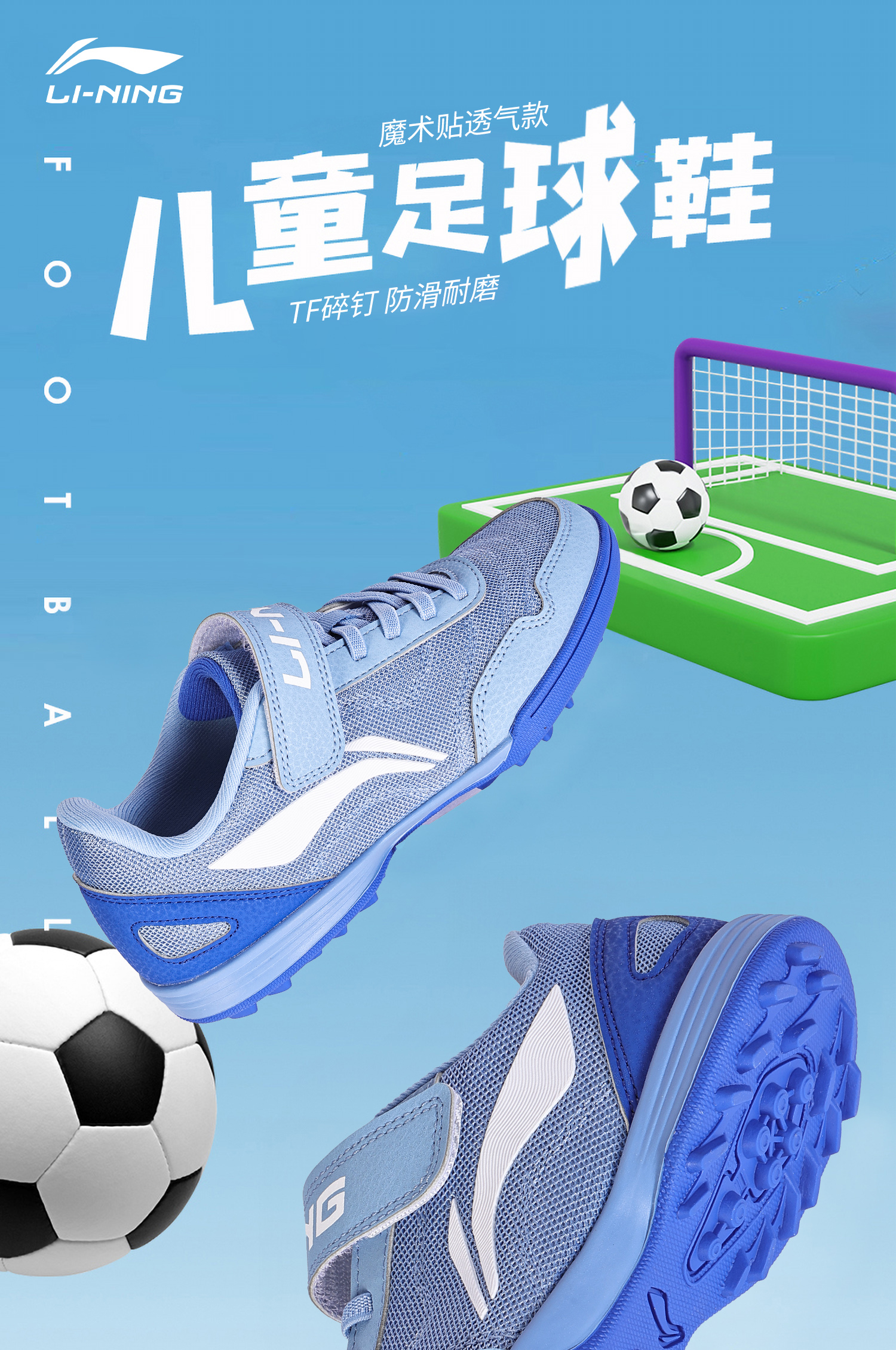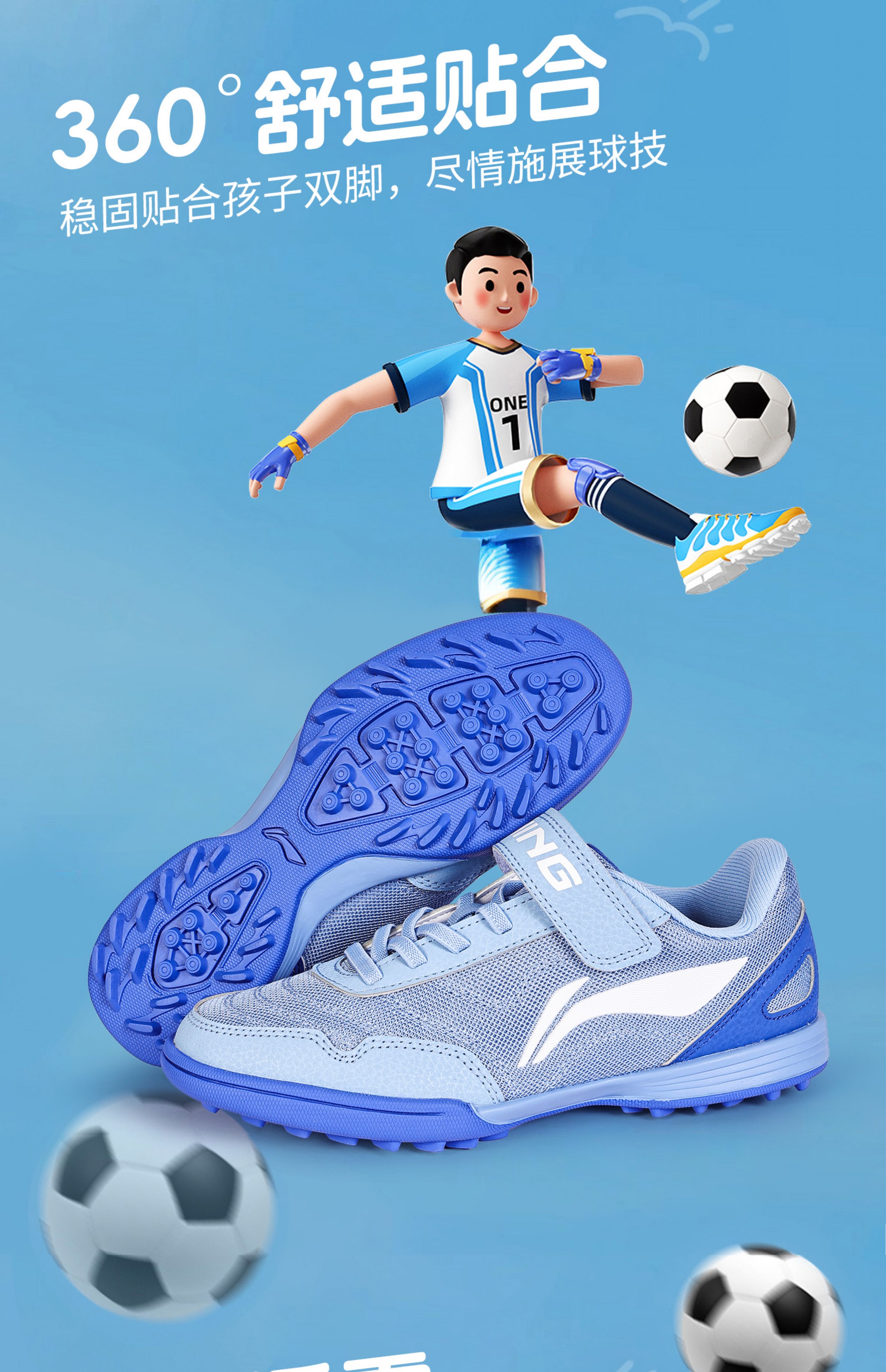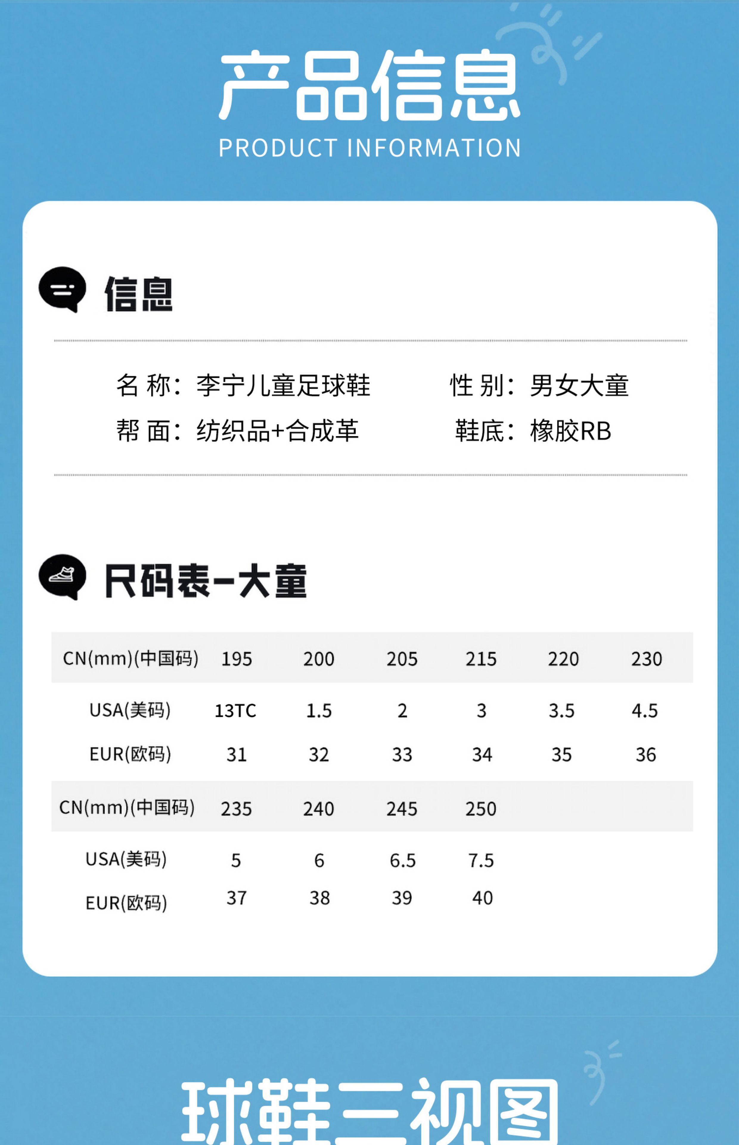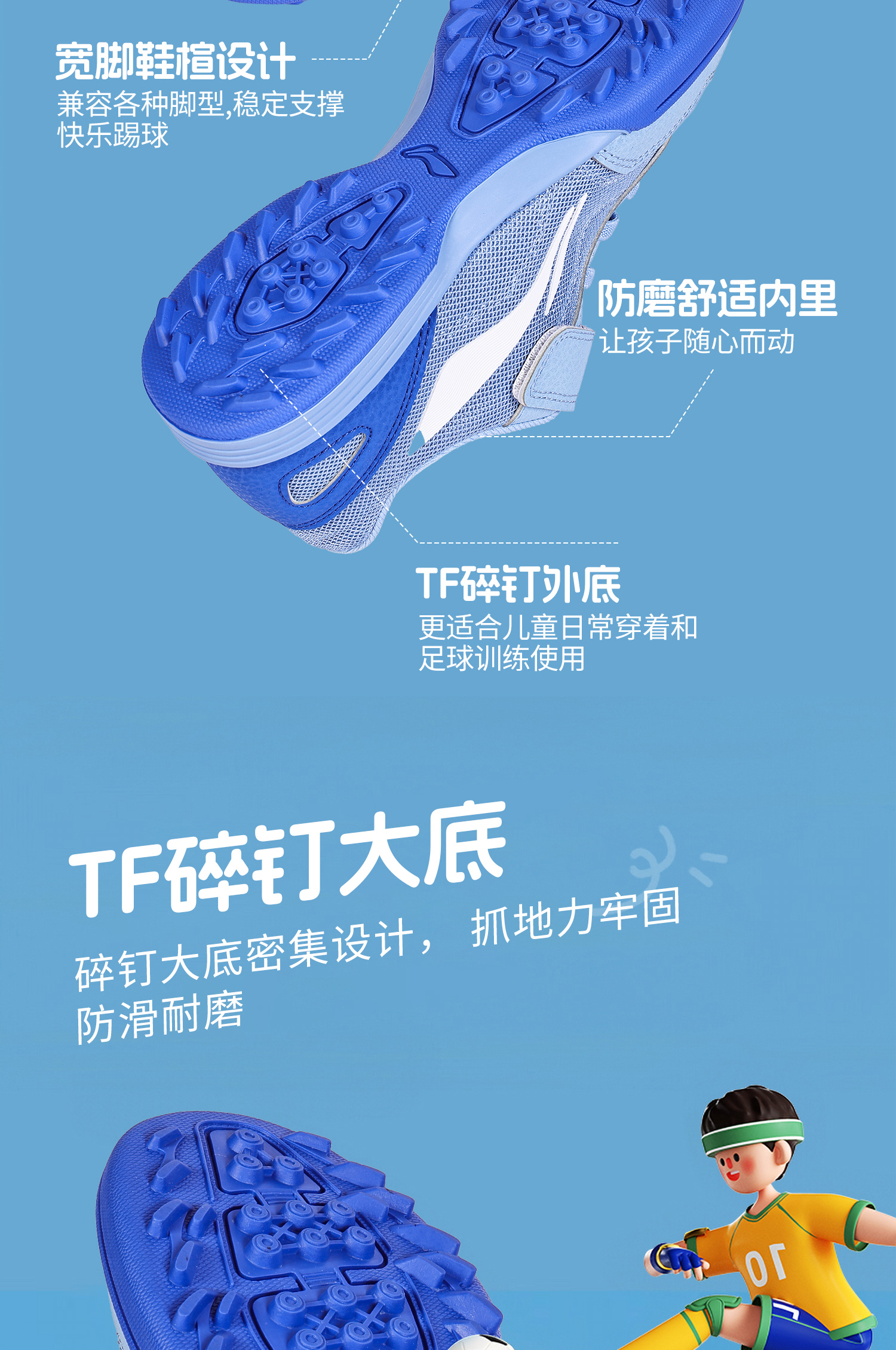 李宁儿童足球鞋男童小学生网面TF碎钉青少年男孩少儿专业训练专用
