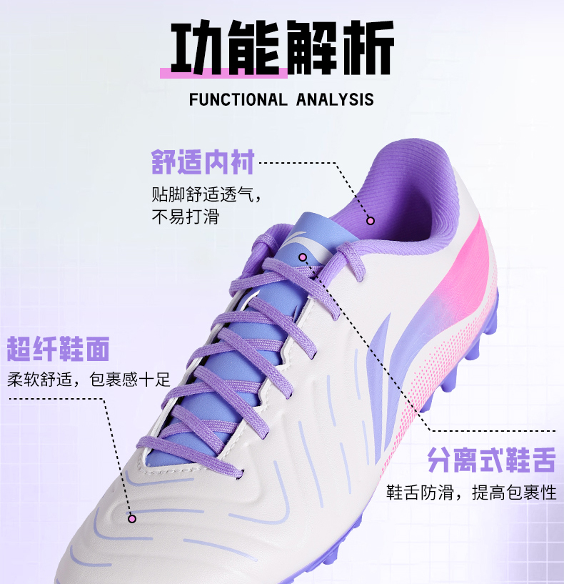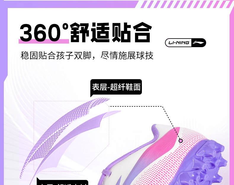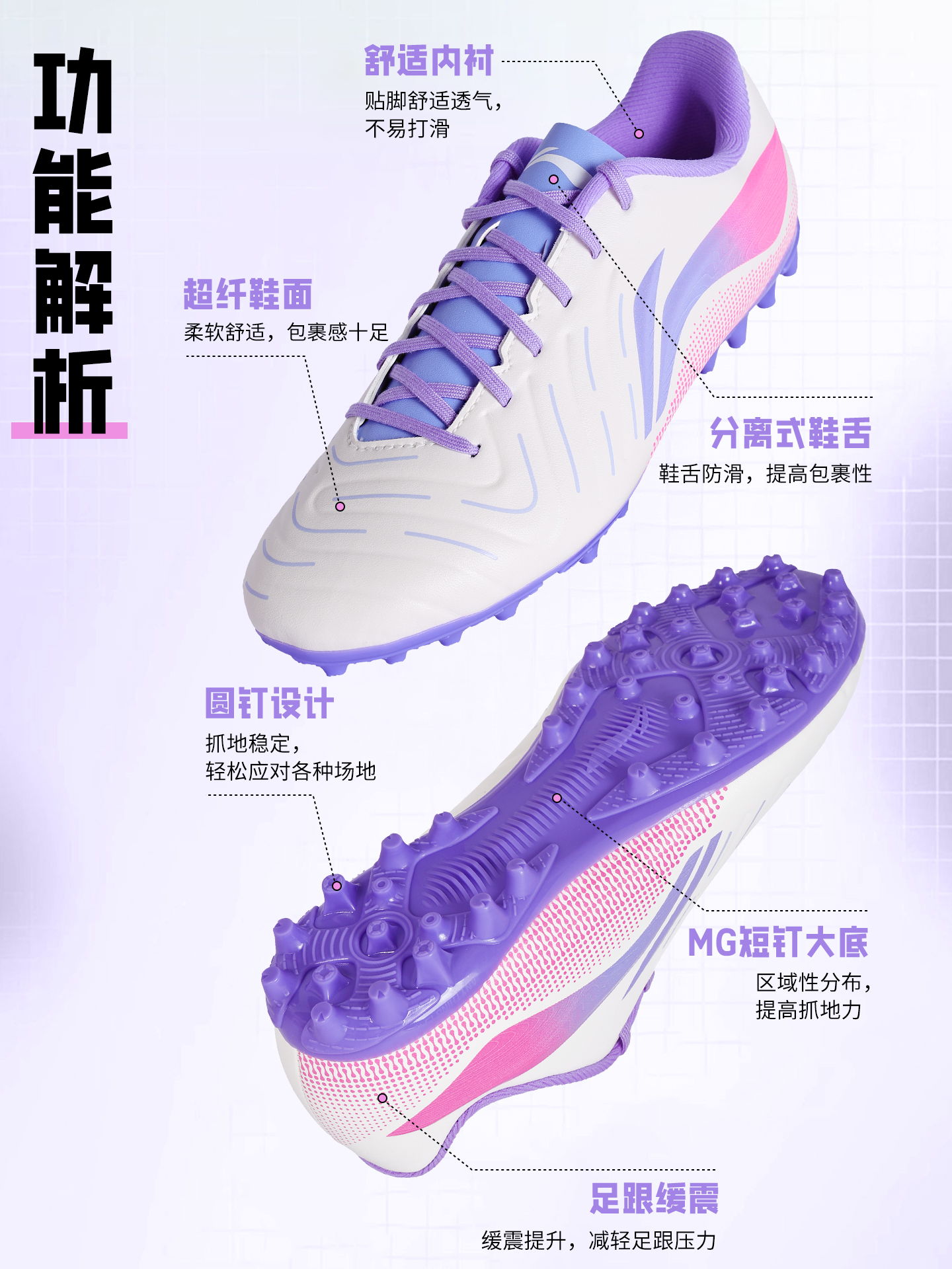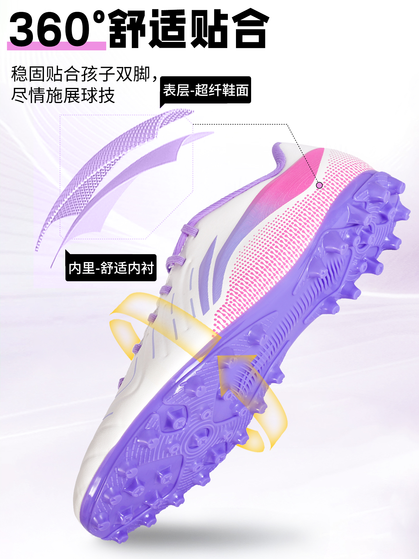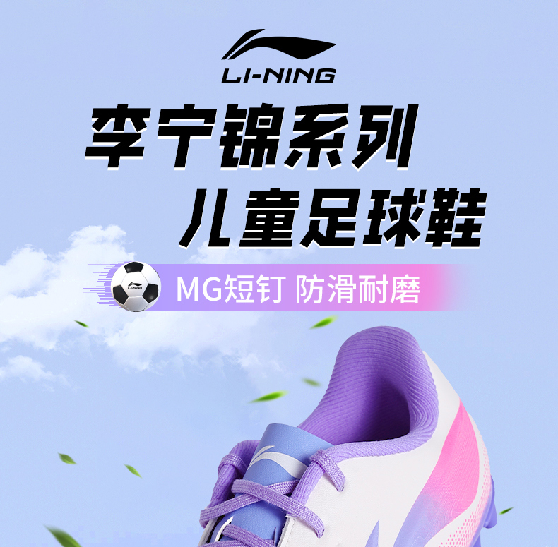 李宁儿童足球鞋男童女孩MG短钉TF碎钉青少年小学生训练比赛专用鞋