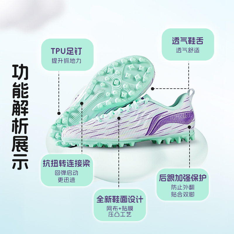 李宁儿童足球鞋MG短钉TF碎钉疾影男童女孩小学生青少年专用鞋正品