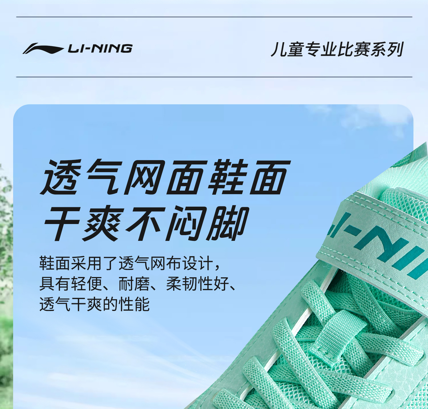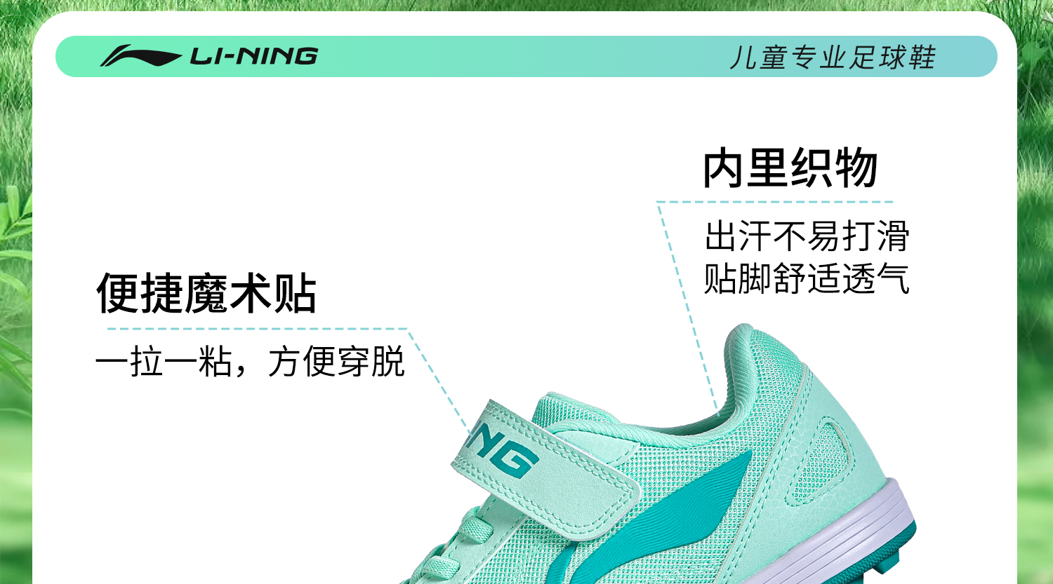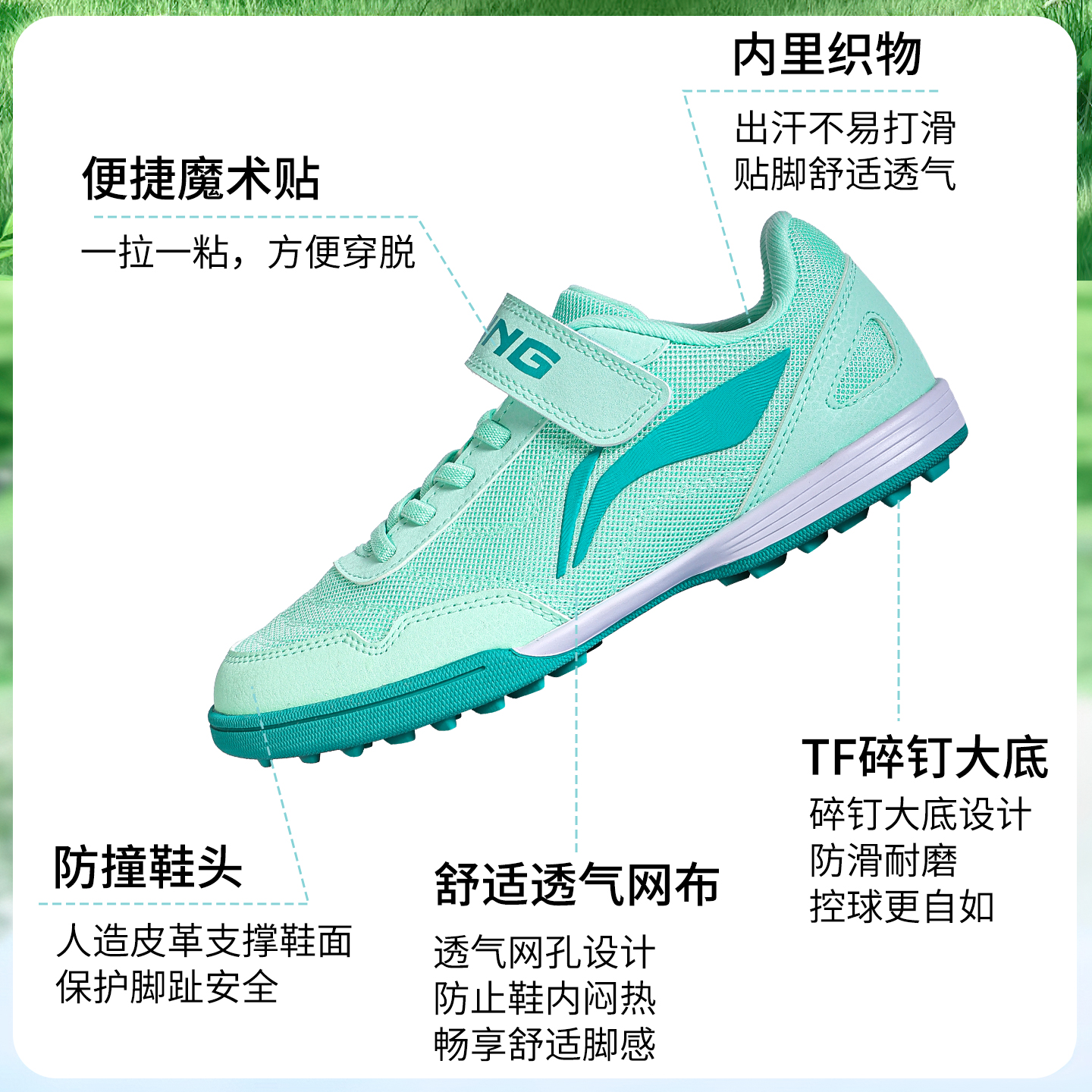 李宁儿童足球鞋男童小学生网面TF碎钉青少年男孩少儿比赛训练专用
