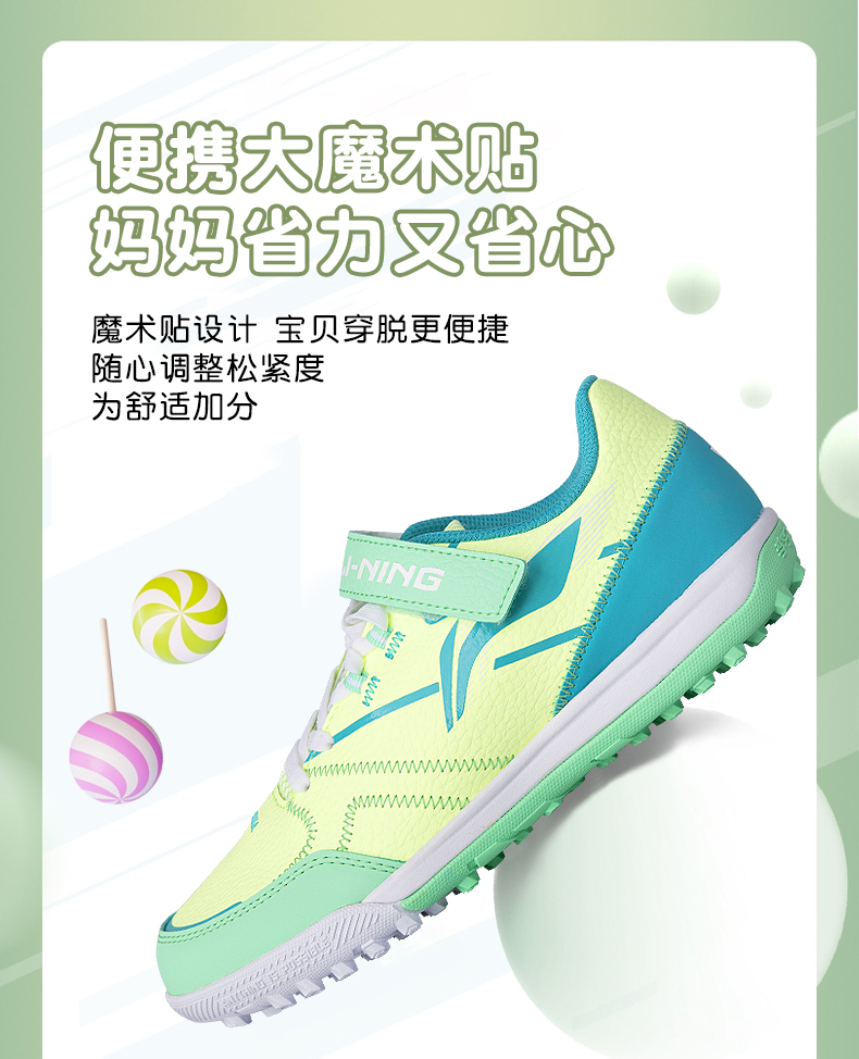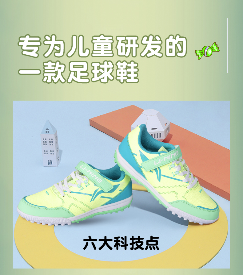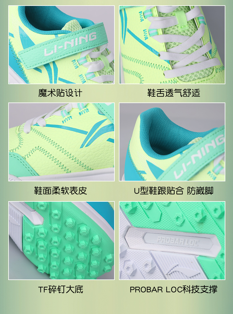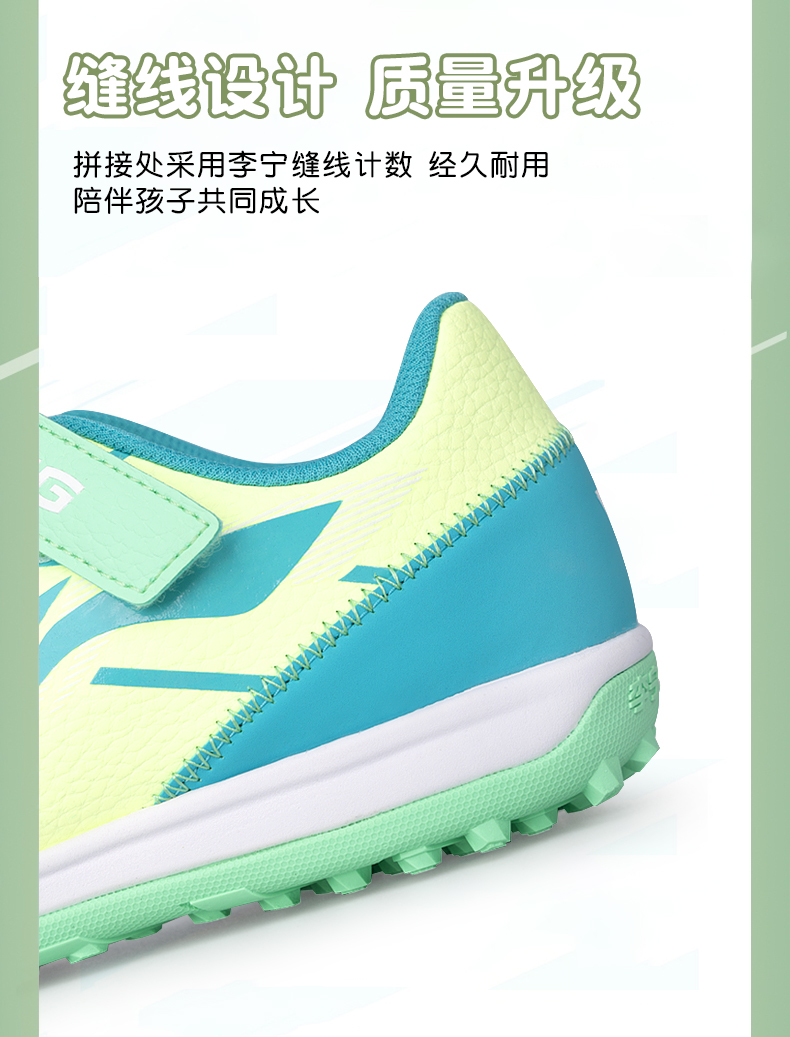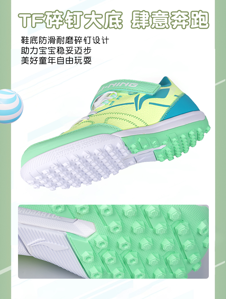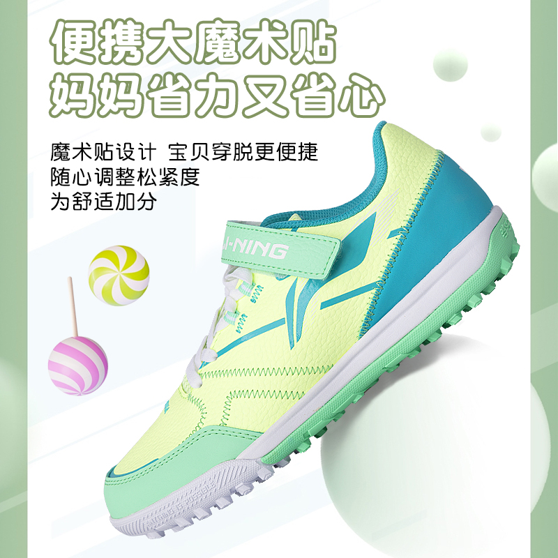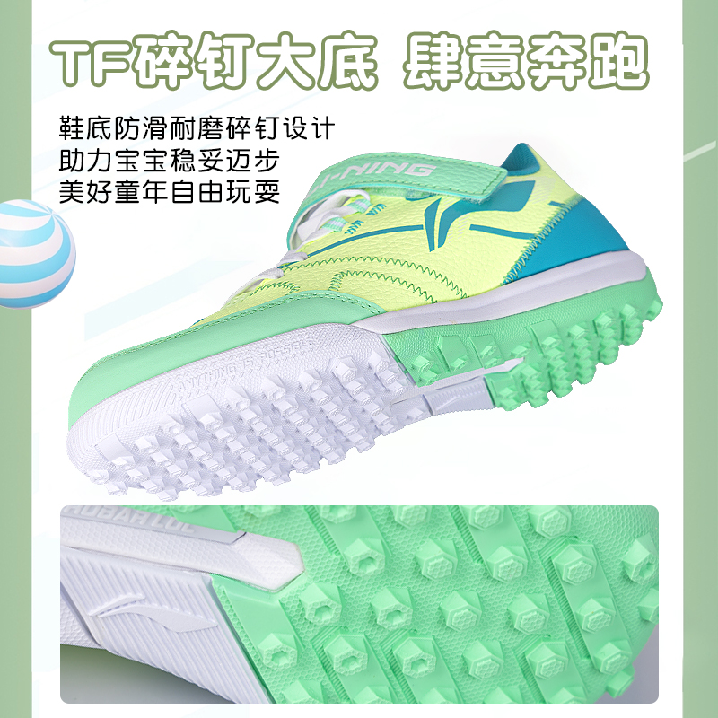 李宁儿童足球鞋男童碎钉小学生专业魔术贴男孩女TF青少年训练专用
