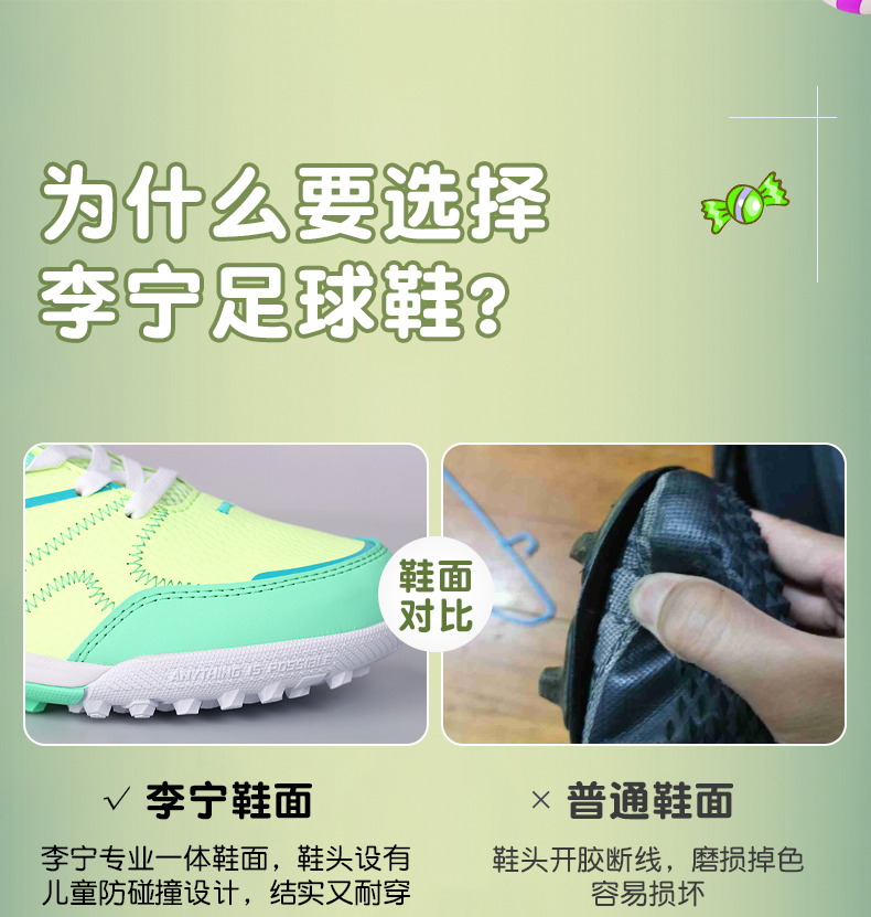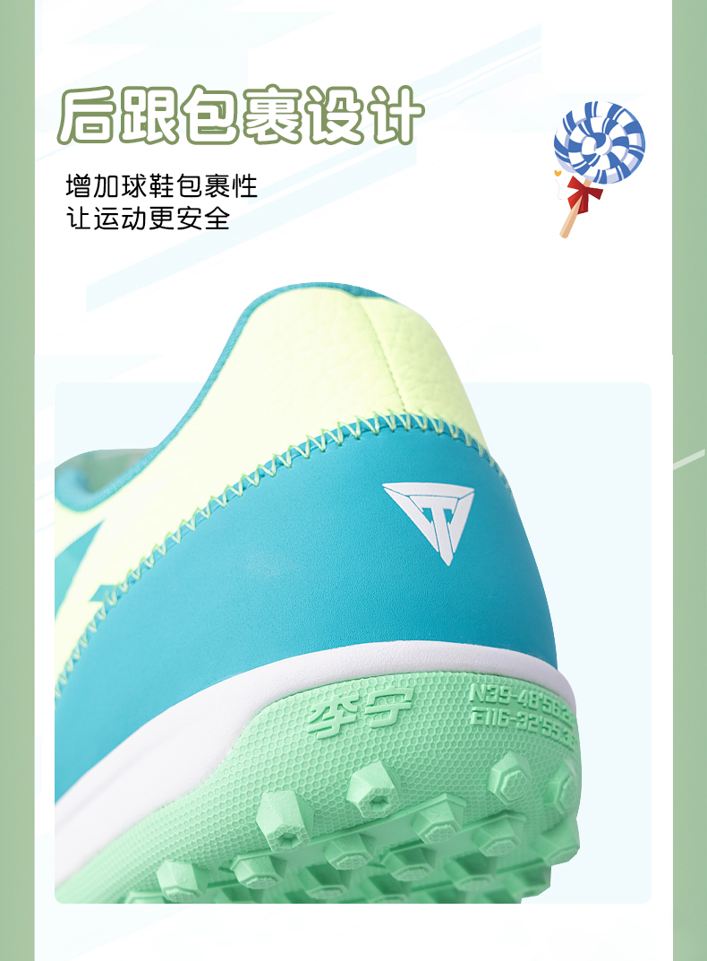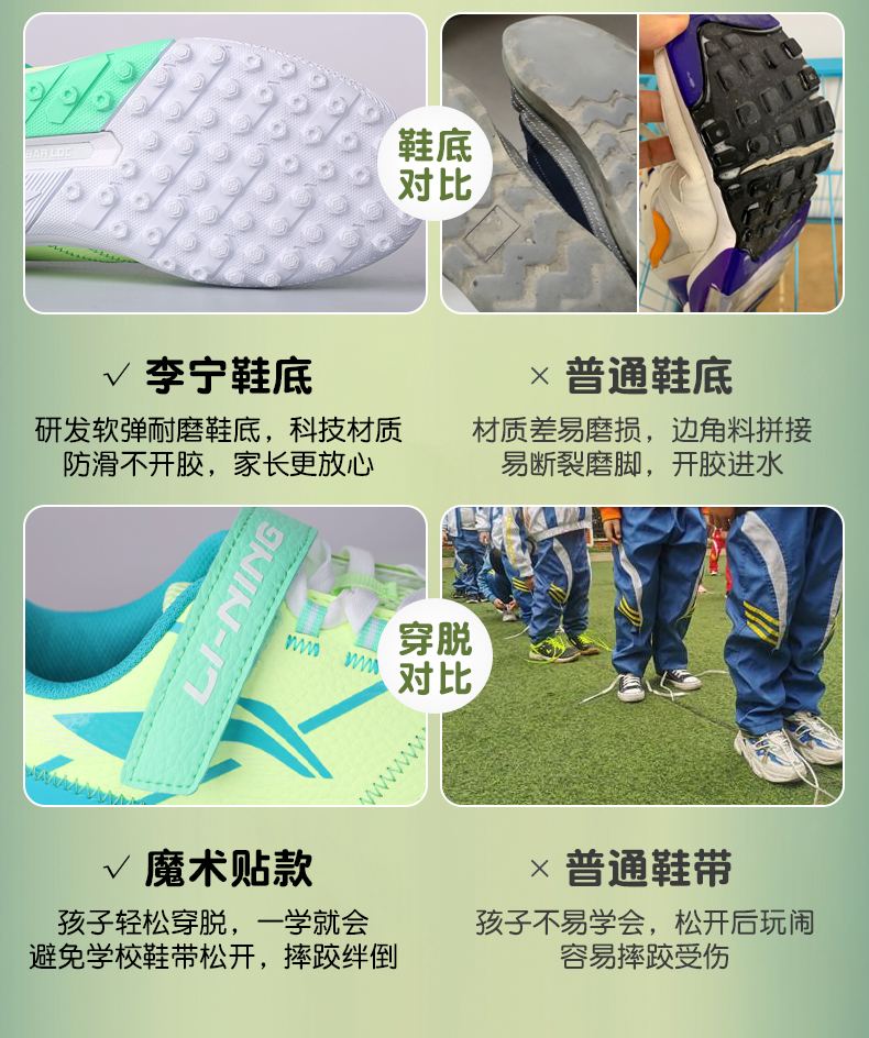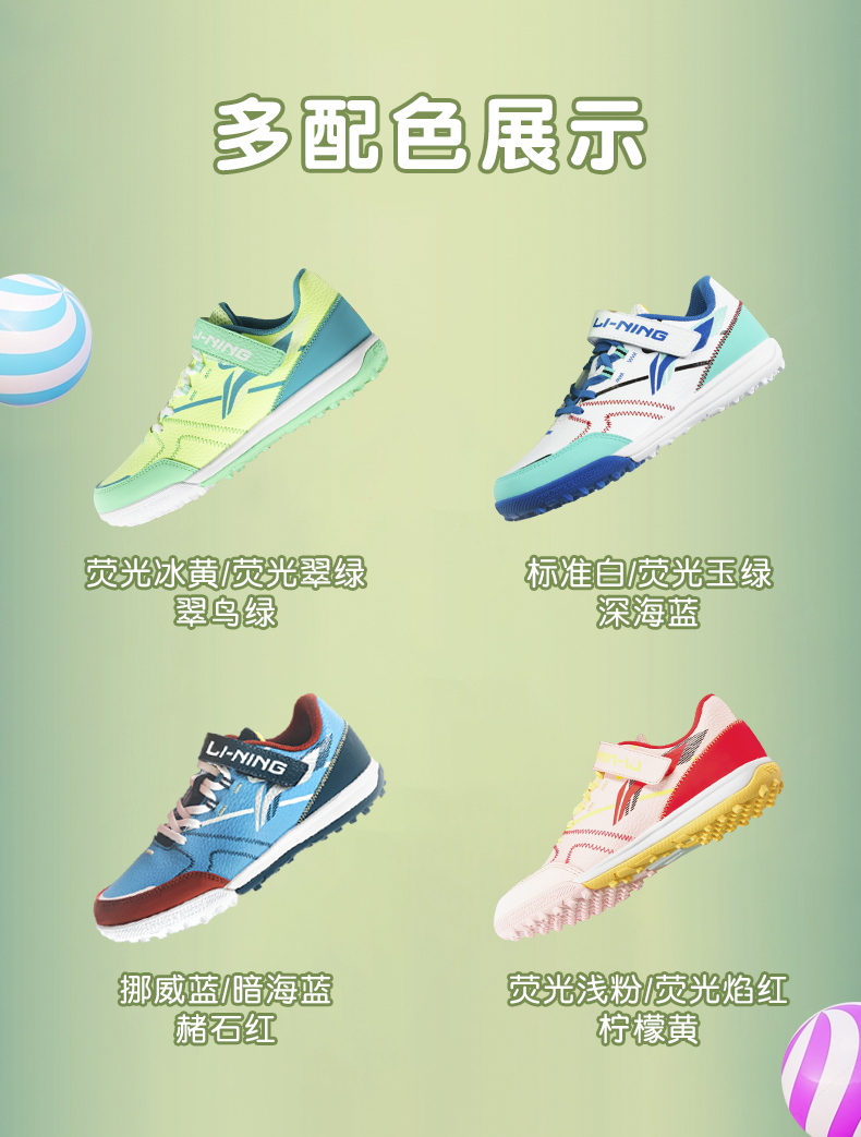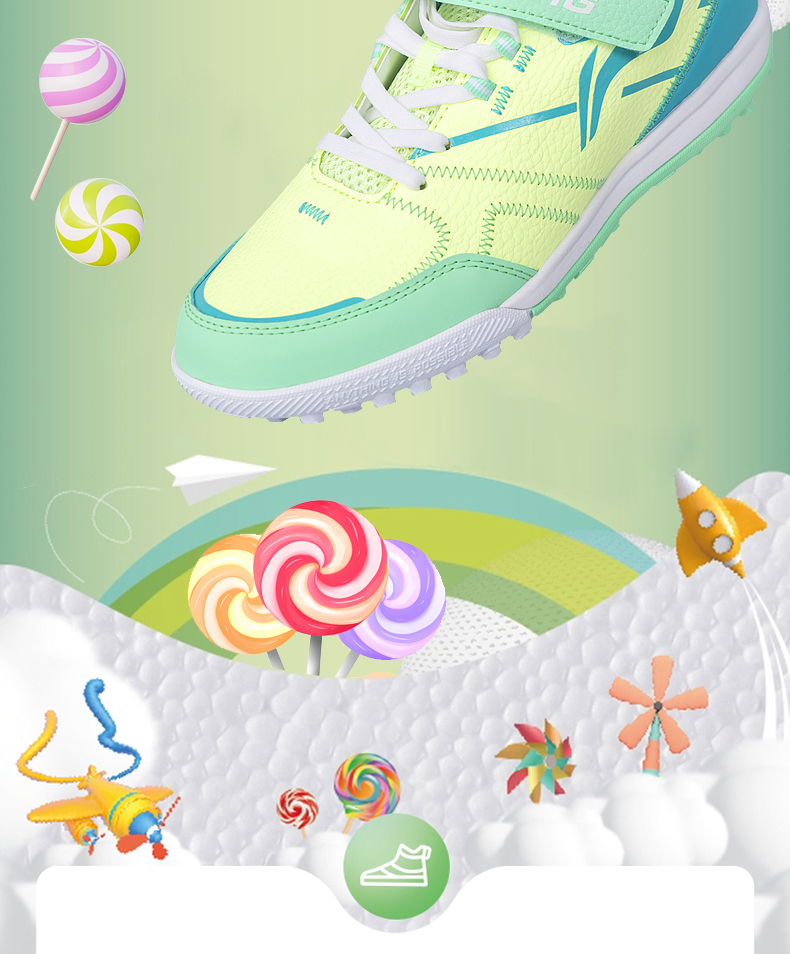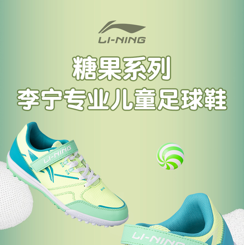 李宁儿童足球鞋男童碎钉小学生专业魔术贴男孩女TF青少年训练专用