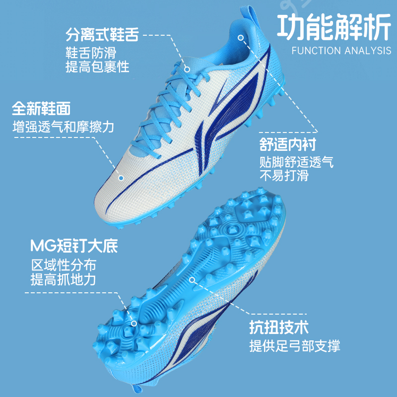 李宁儿童足球鞋MG短钉TF碎钉疾影正品男童小学生青少年比赛专用鞋